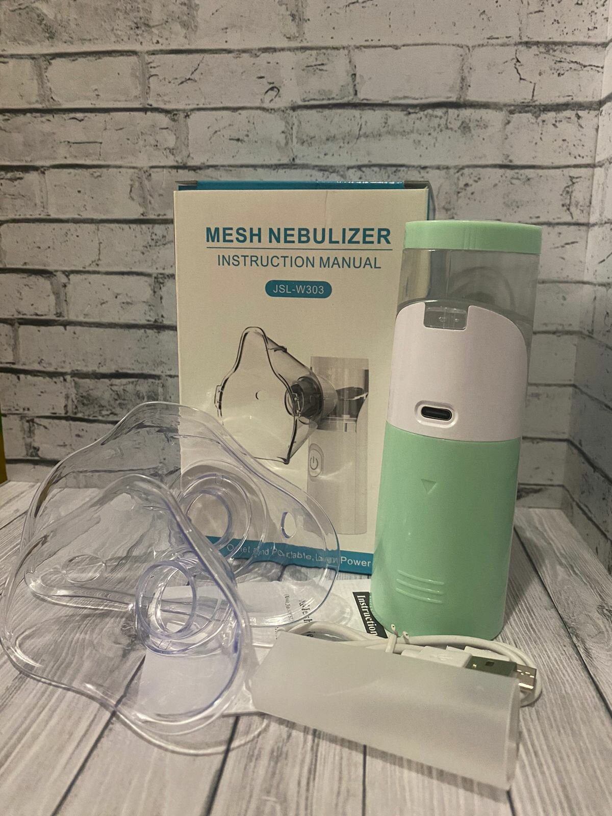Ингалятор портативный бесшумный mesh небулайзер JSL-W303 для детей и взрослых с насадками для лечения заболеваний носа и горла, цвет белый с зеленым интересное: