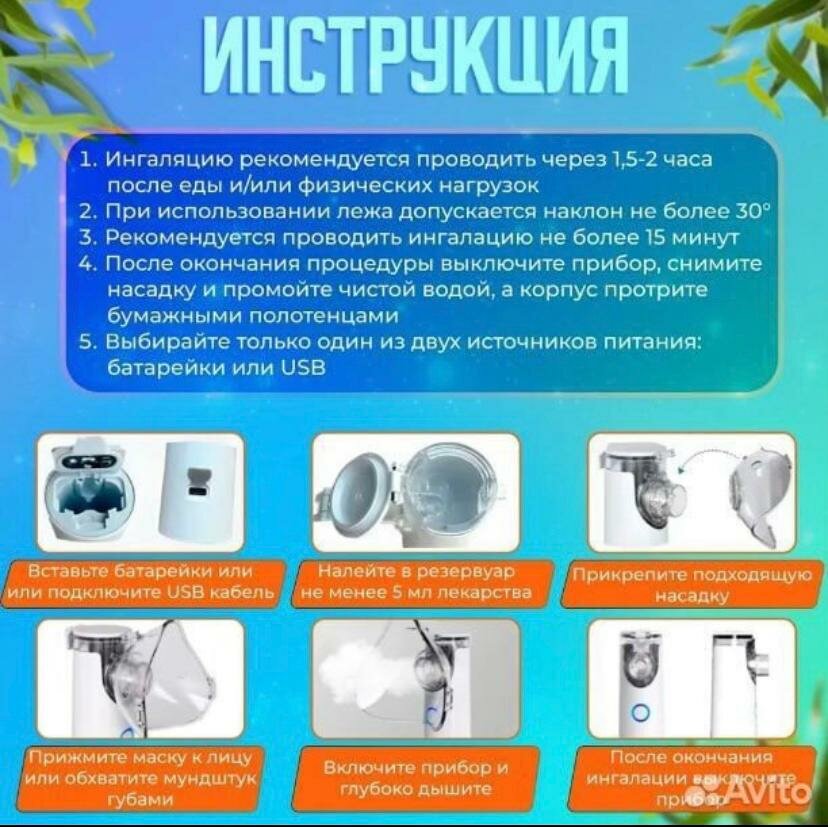 Ингалятор mesh небулайзер для детей и взрослых/ Портативный бесшумный небулайзер с насадками/ Для лечения заболеваний носа и горла