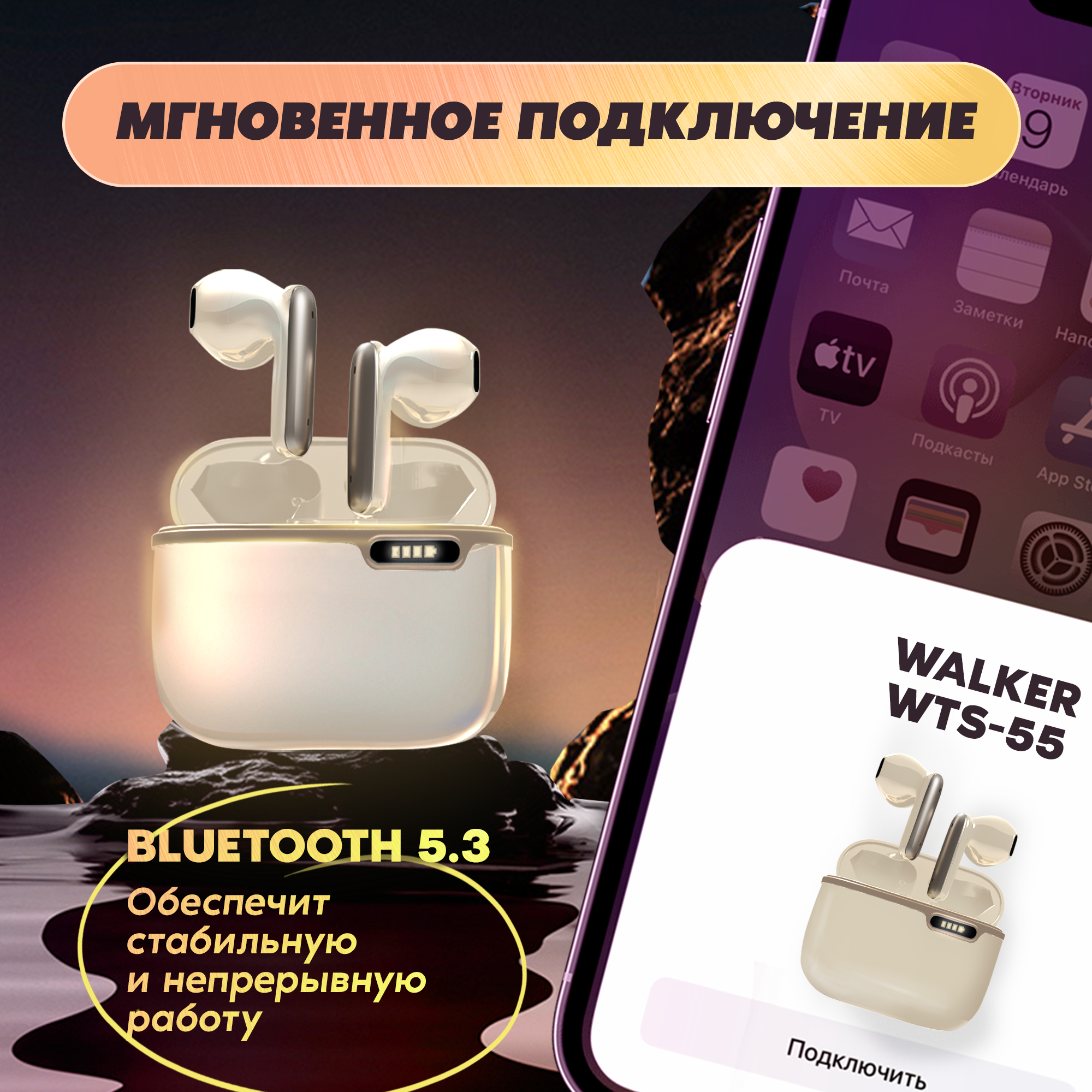 Купить Наушники беспроводные с микрофоном, WALКЕR, WTS-55, белые, сенсорное управление // наушники как apple, airpods pro 2, jbl наушники