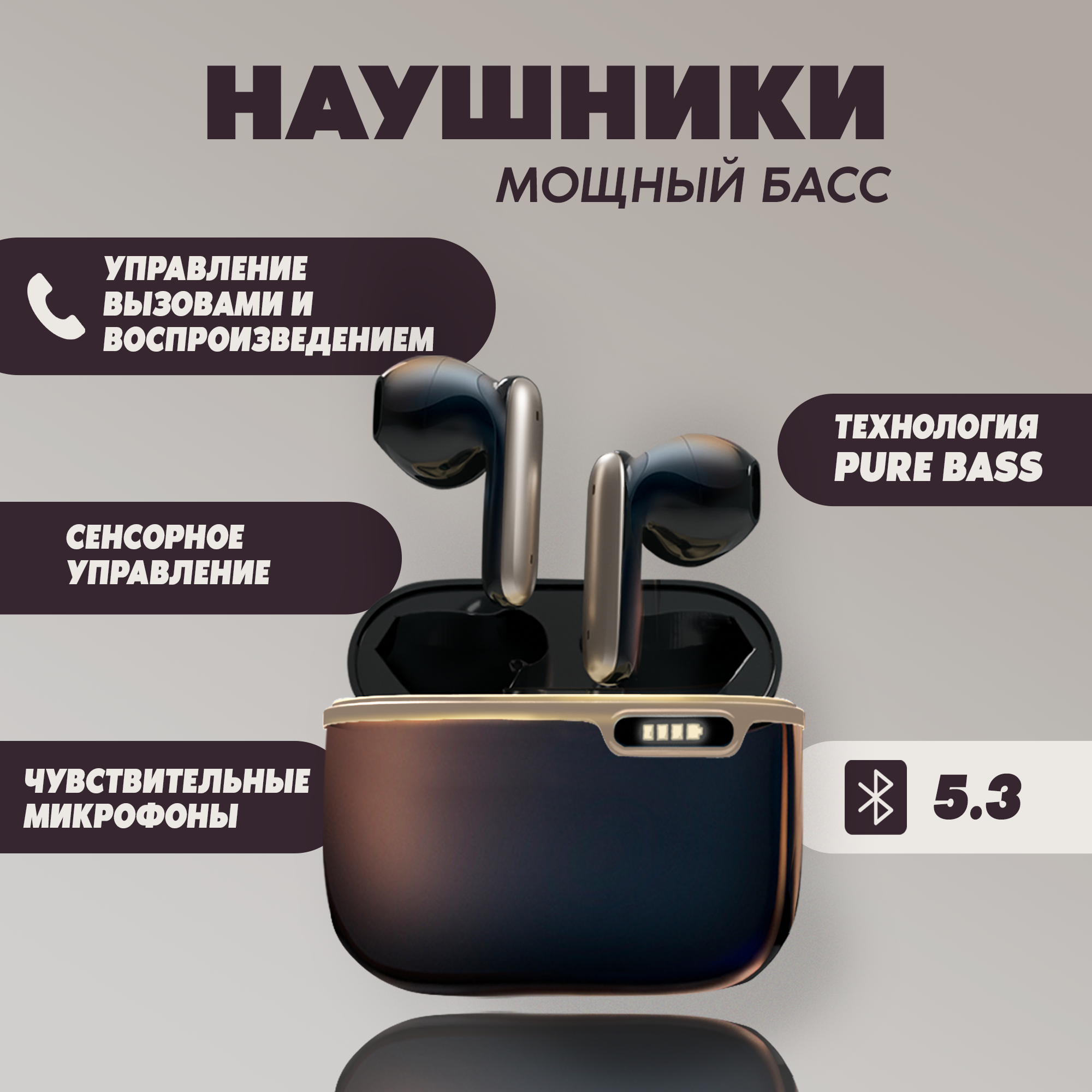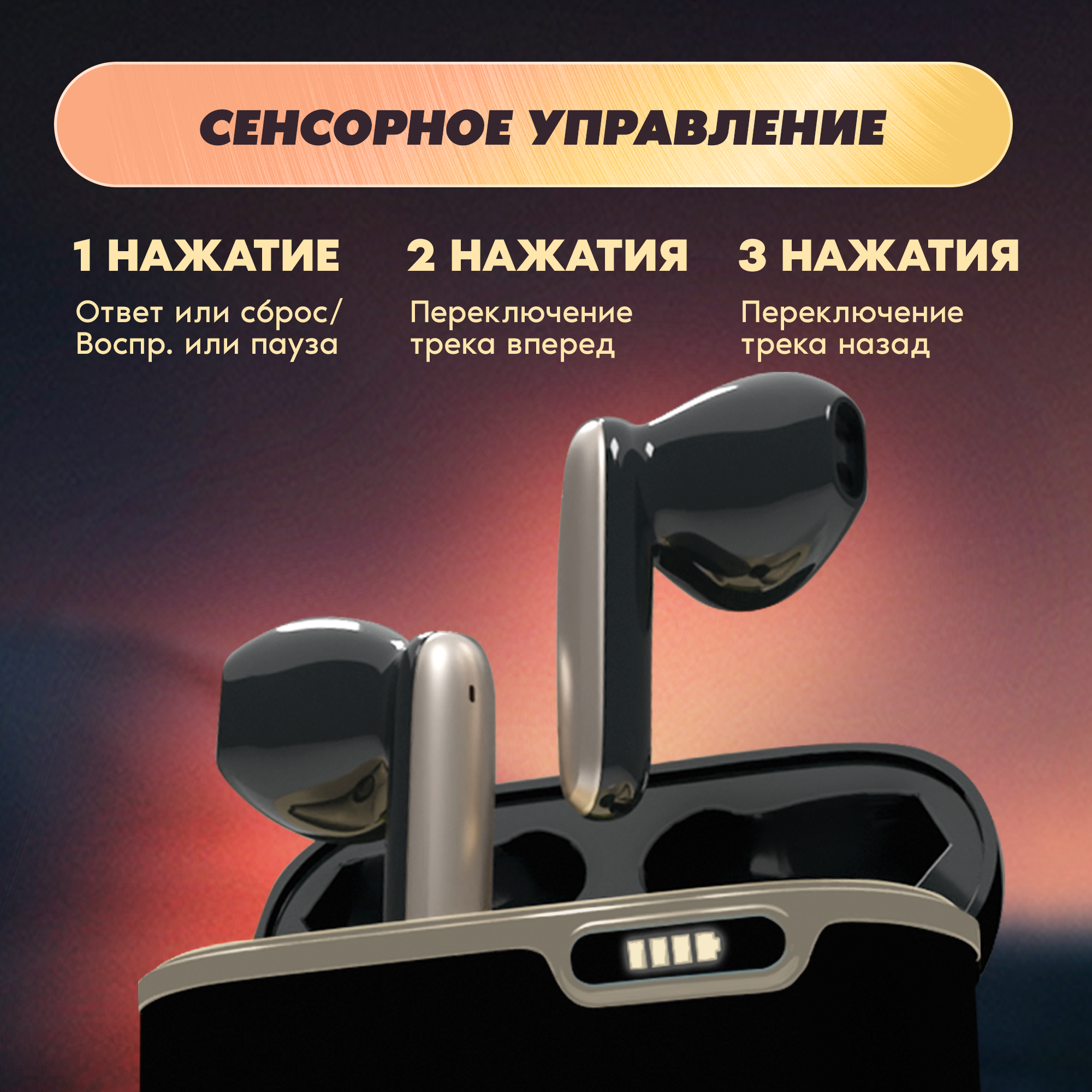 Наушники беспроводные с микрофоном, WALKER, WTS-55, черные, сенсорное управление // наушники как apple, airpods pro 2, jbl наушники