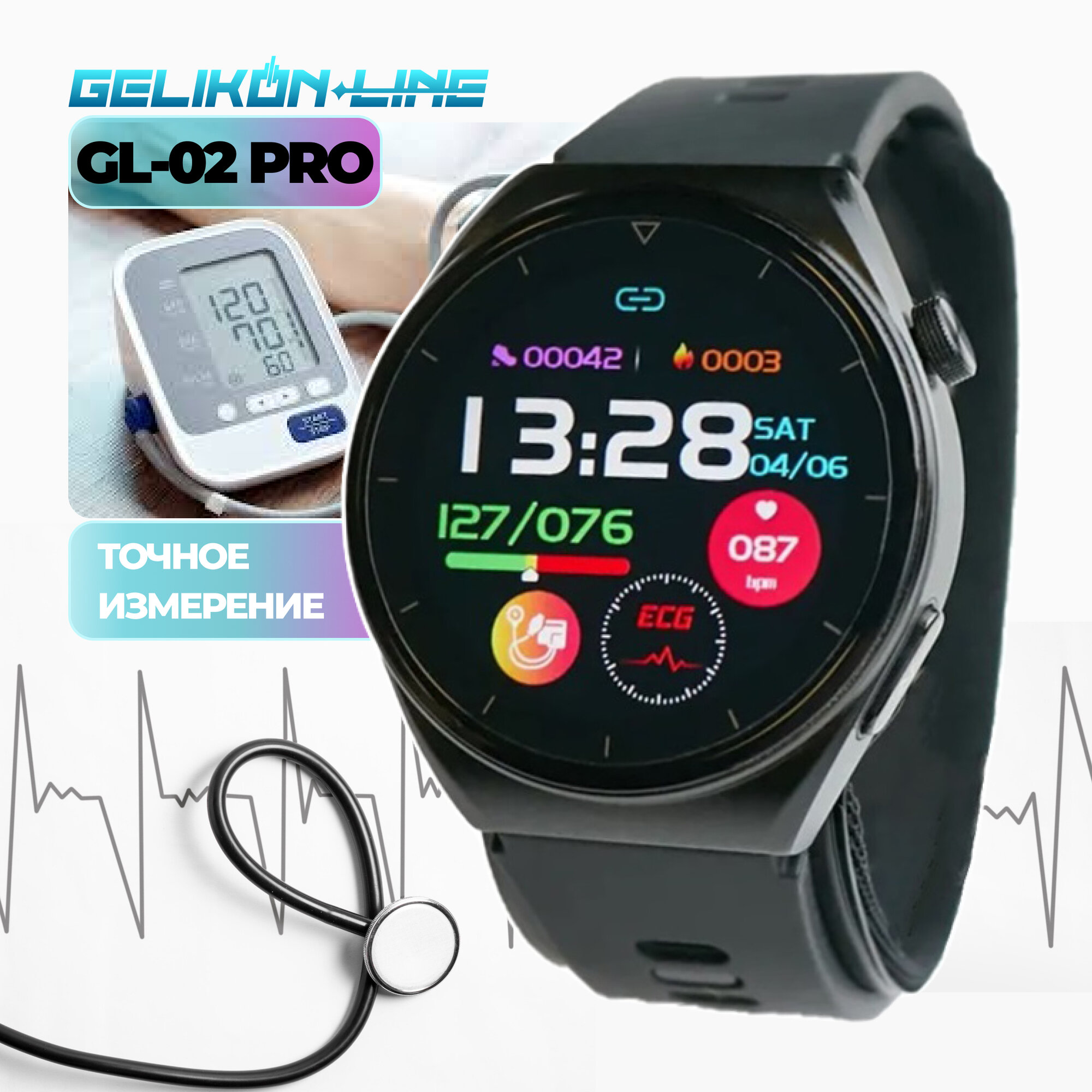 Часы-тонометр с ЭКГ и точным измерением давления GELIKON LINE GL-02PRO (2025)