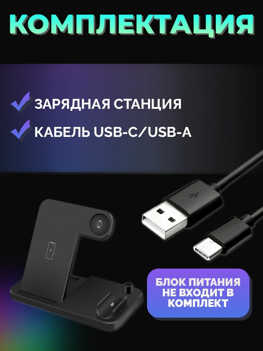 Беспроводное зарядное устройство 4 в 1 для смартфонов, часов и наушников / Док станция с быстрой зарядкой 15W (QC) интересное: