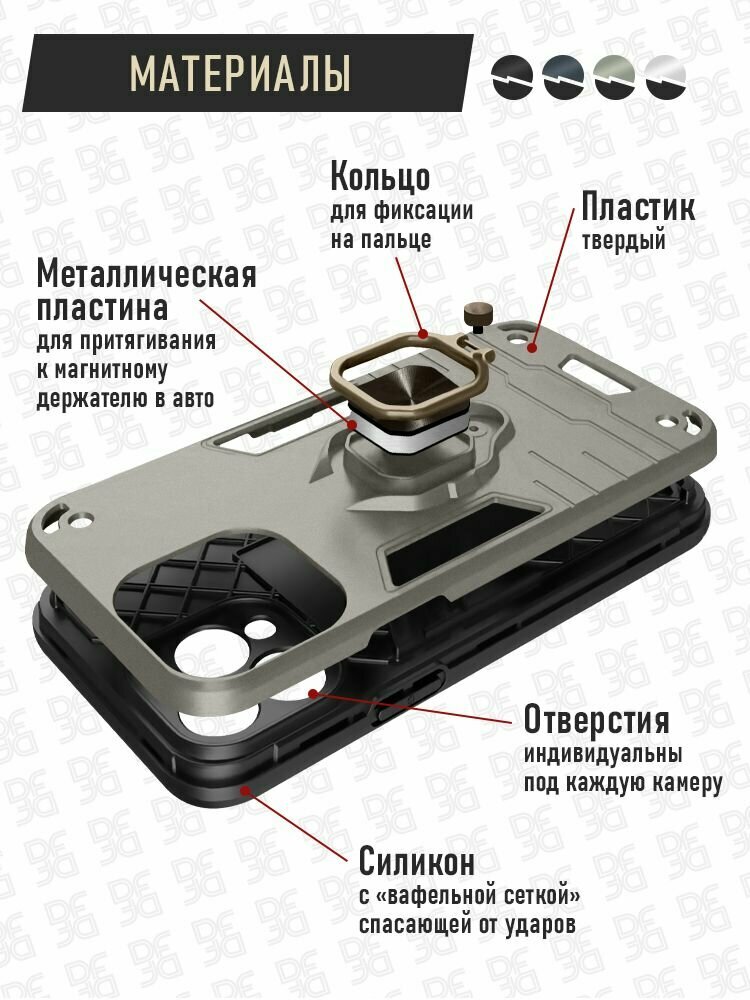 Противоударный чехол с кольцом и креплением для Oppo A58 (4G) / Оппо А58 (4Джи) DF oArmor-05 (silver) интересное: