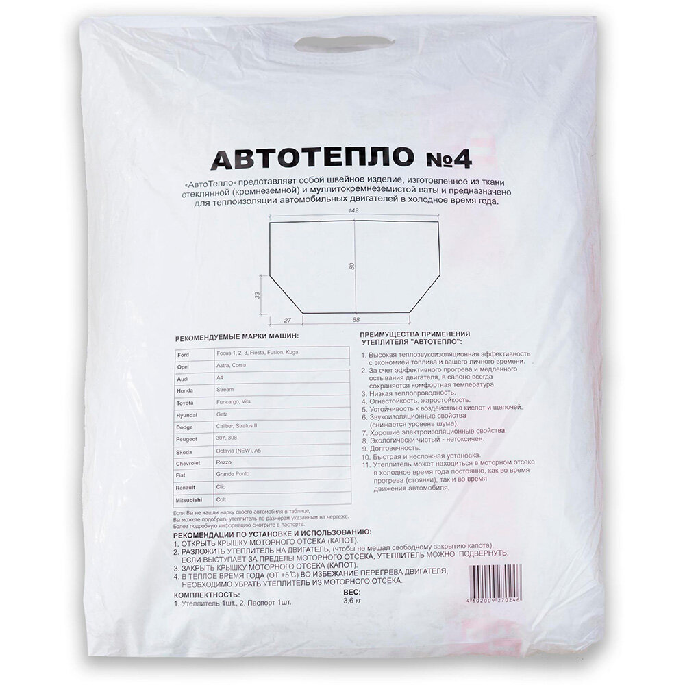 Автоодеяло Автотепло №4 140х80 cм (Ford Focus, Audi A4, Opel Astra) интересное: