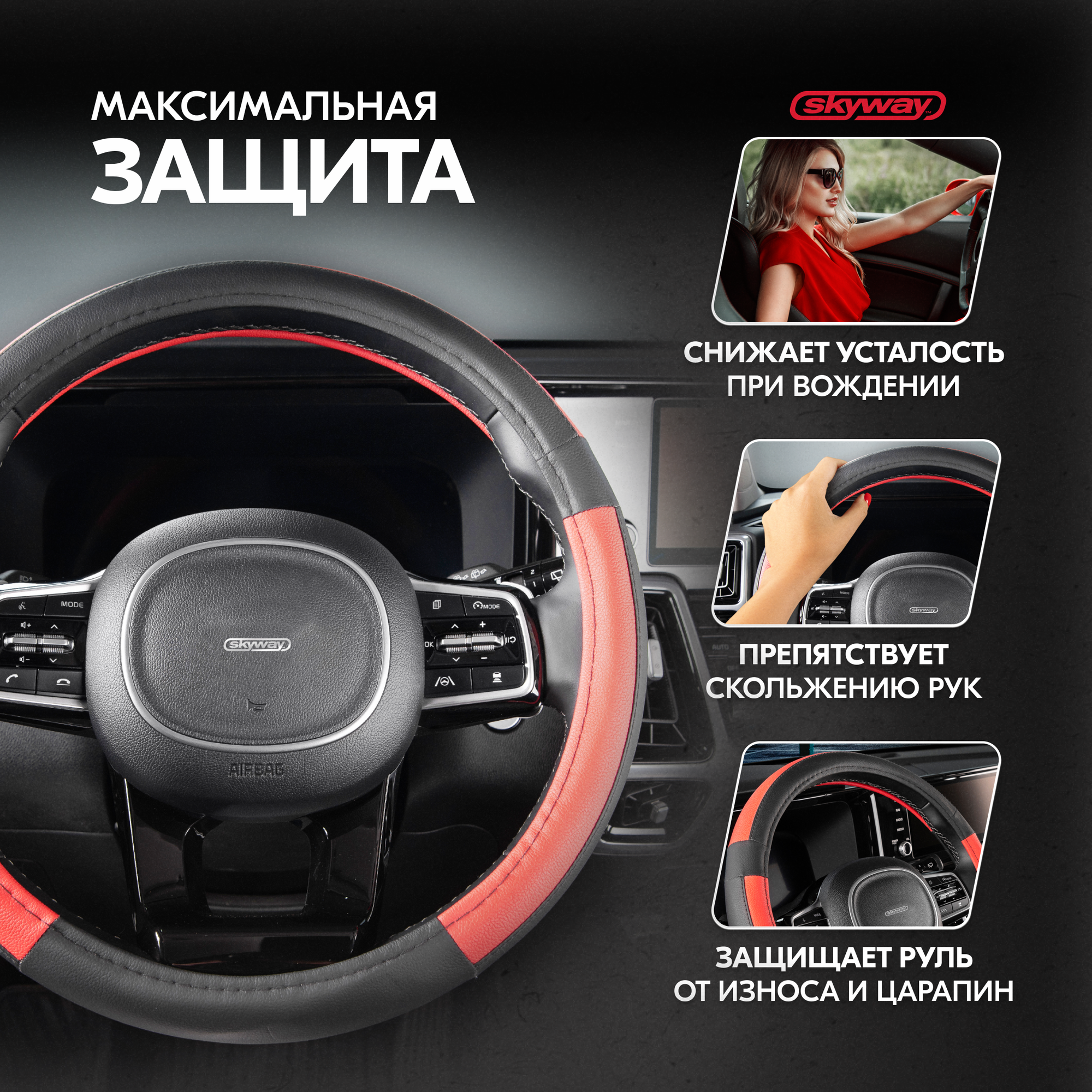 Купить Оплетка руля SKYWAY Combo 3 M 37/38/39 см, экокожа, черно-красный, S01102359