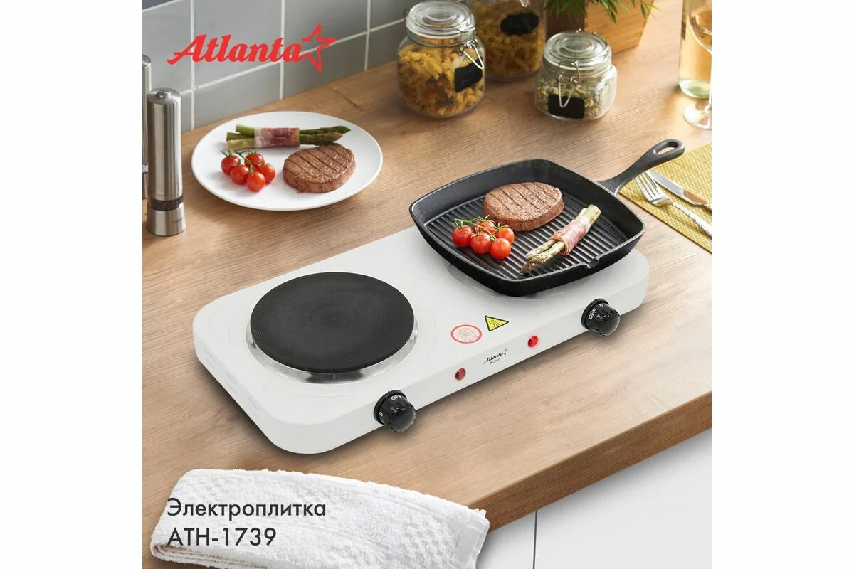 Двухконфорочная электроплитка Atlanta ATH-1739 white интересное: