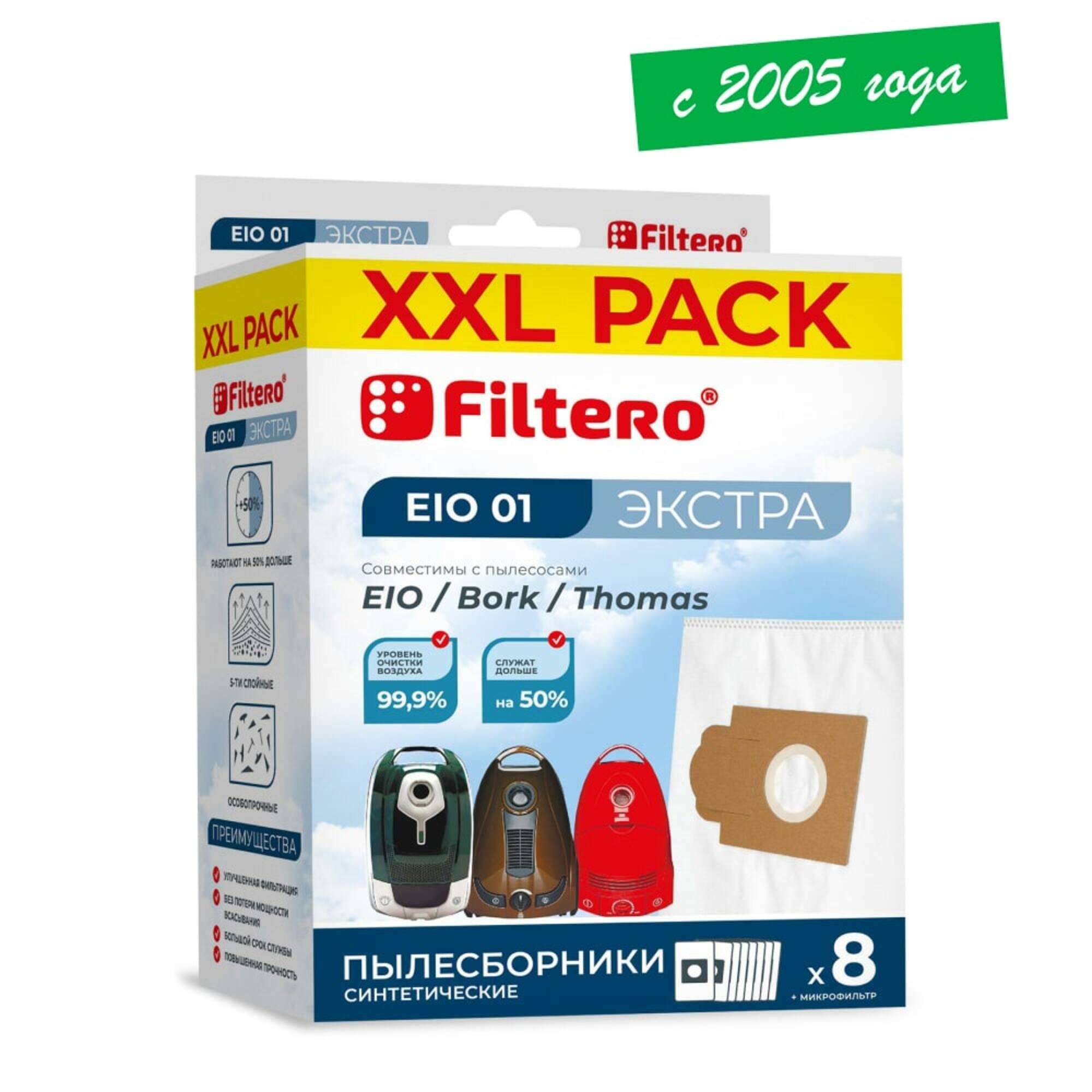 Мешки-пылесборники Filtero EIO 01 (8) XXL PACK, экстра, для пылесосов EIO, Bork, синтетические, 8 штук + микрофильтр