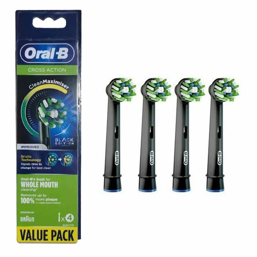 Купить Оригинальные насадки для электрической зубной щетки Oral-B Cross Action CleanMaximiser Black, 4 шт., для тщательного удаления налетаv..