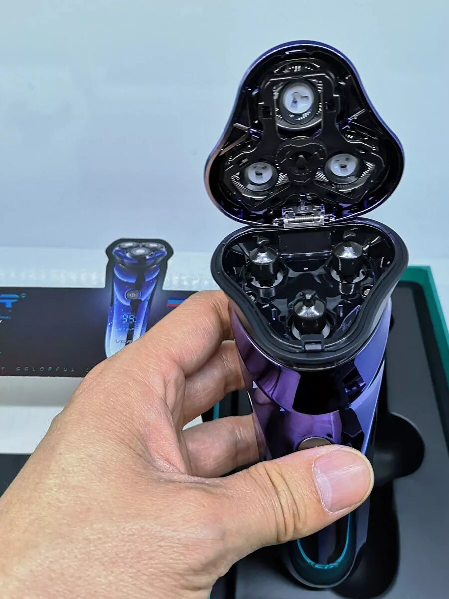 Заряда хватает на долго. Чистится легко. Открываются все лезвия. Те кто пишут что не получается открыть среднее лезвие - то извините, но вы просто рукожопы. Там даже стрелочки нарисованы в какую сторону сделать оборот. оборот где то на 10 градусов, далее надо аккуратно подцепить тонким ножом в образовавшуюся щелку. Полностью можно мыть под водой - это большооой плюс. |
