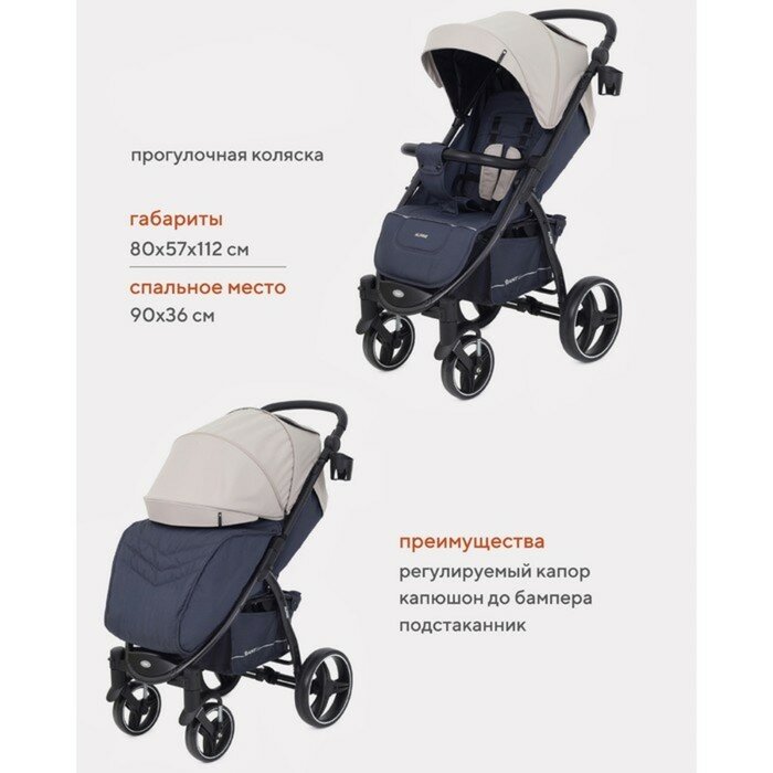 Коляска детская Rant прогулочная, Basic Alpine, цвет бежевый, с корзиной и подстаканником (4670078629838)