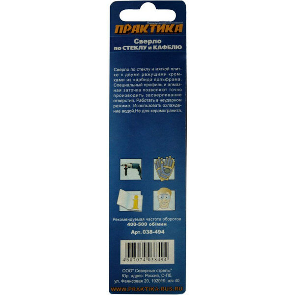 Сверло по стеклу и керамике Практика ."Мастер" 12 х 100 мм (1шт.) блистер, 038-494 интересное: