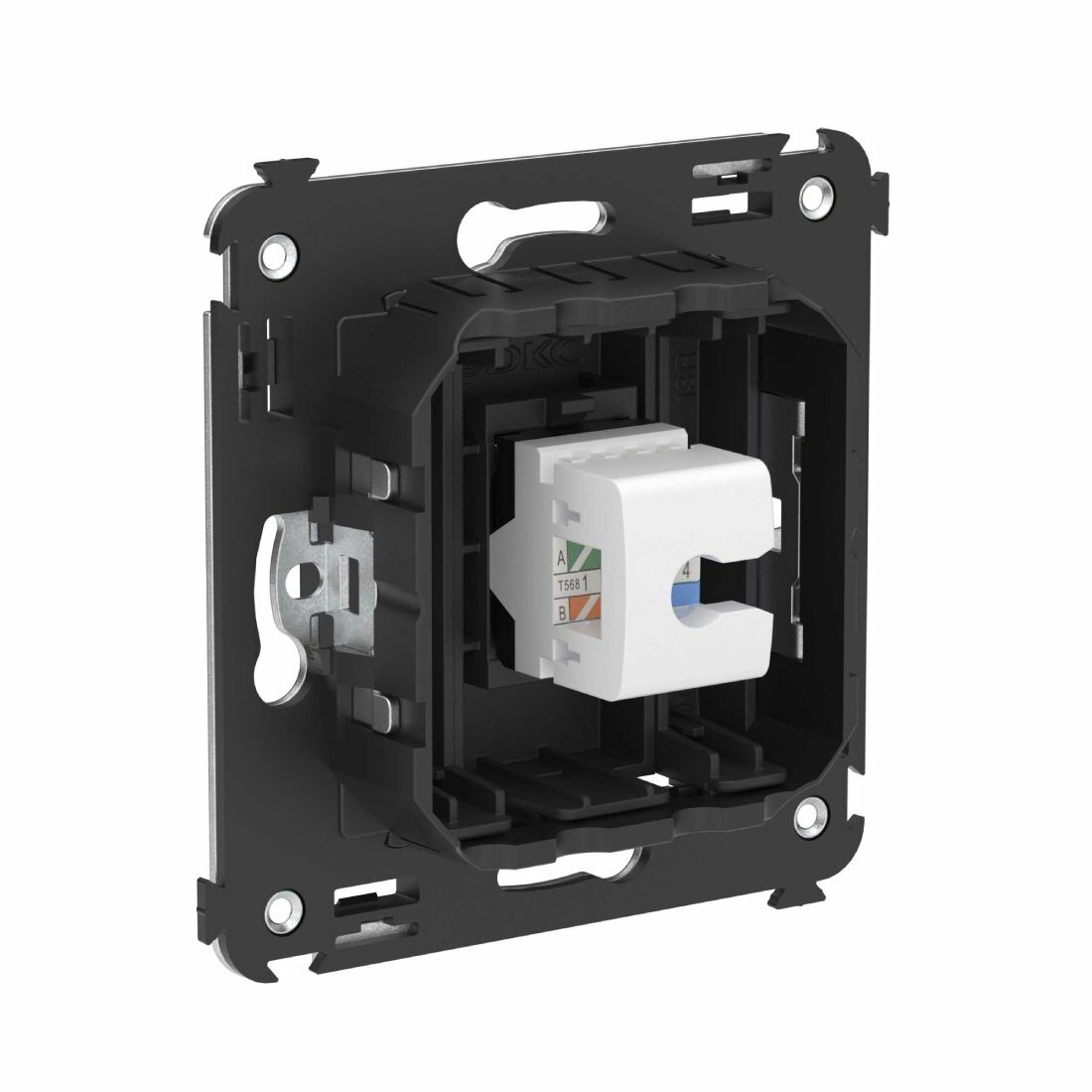 Купить Механизм компьютерной розетки RJ-45 DKC Avanti без шторки в стену одинарная черный 4412663 (комплект из 5шт.)
