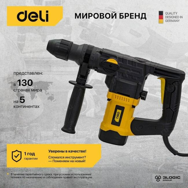 Перфоратор Deli Tools Deli DL-DC28-E1 (1050Вт, SDS PLUS, 4300уд/мин, 900об/мин, кейс, в комплекте 3 бура, долото, пика) интересное: