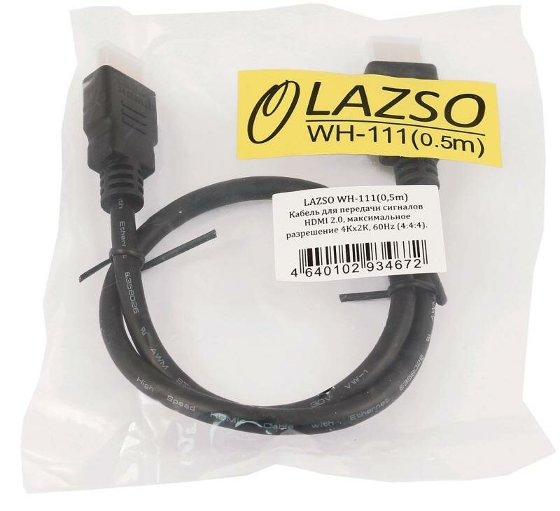 Кабель LAZSO HDMI (m)-HDMI (m), 0,5 м, черный (WH-111)
