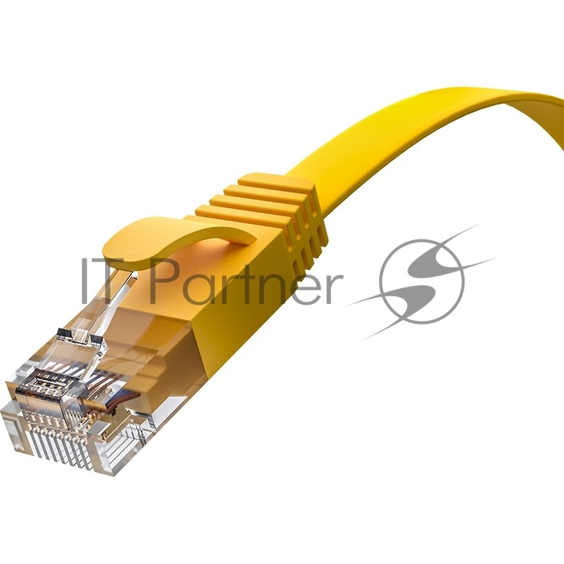 GCR Патч-корд PROF плоский прямой 1.5m, UTP медь кат.6, желтый, 30 AWG, ethernet high speed 10 Гбит/с, RJ45, T568B, GCR-52824 Greenconnect GCR-52824