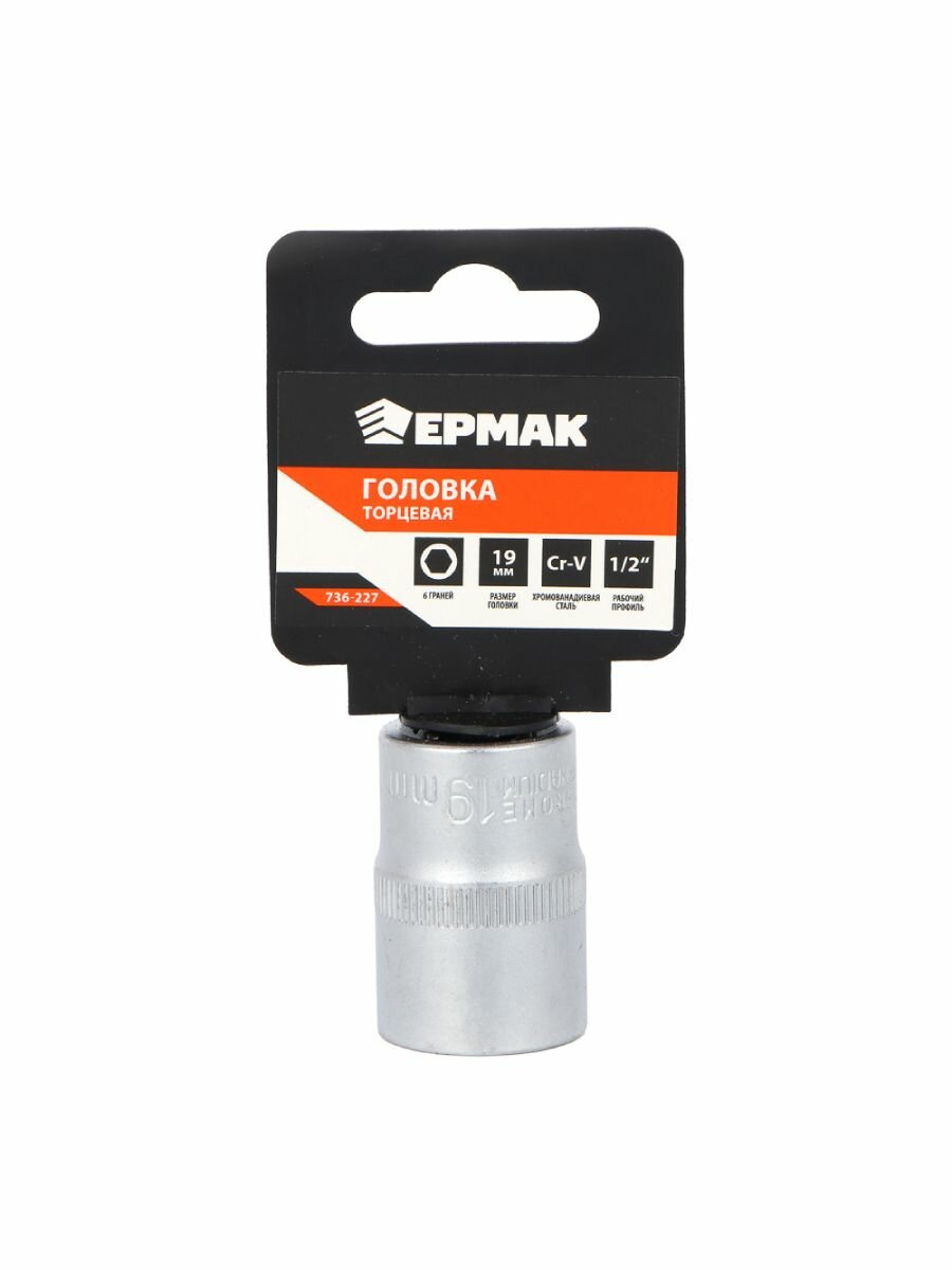 Купить Головка торцевая ермак, 6 граней, 19 мм, 1/2", хром-ванадий