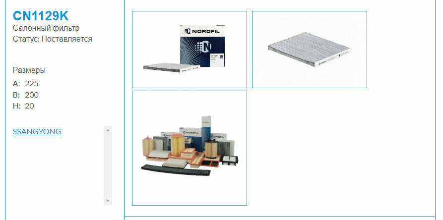NORDFIL CN1129K Фильтр салона угольный Ssangyong Actyon, Korando 10- интересное: