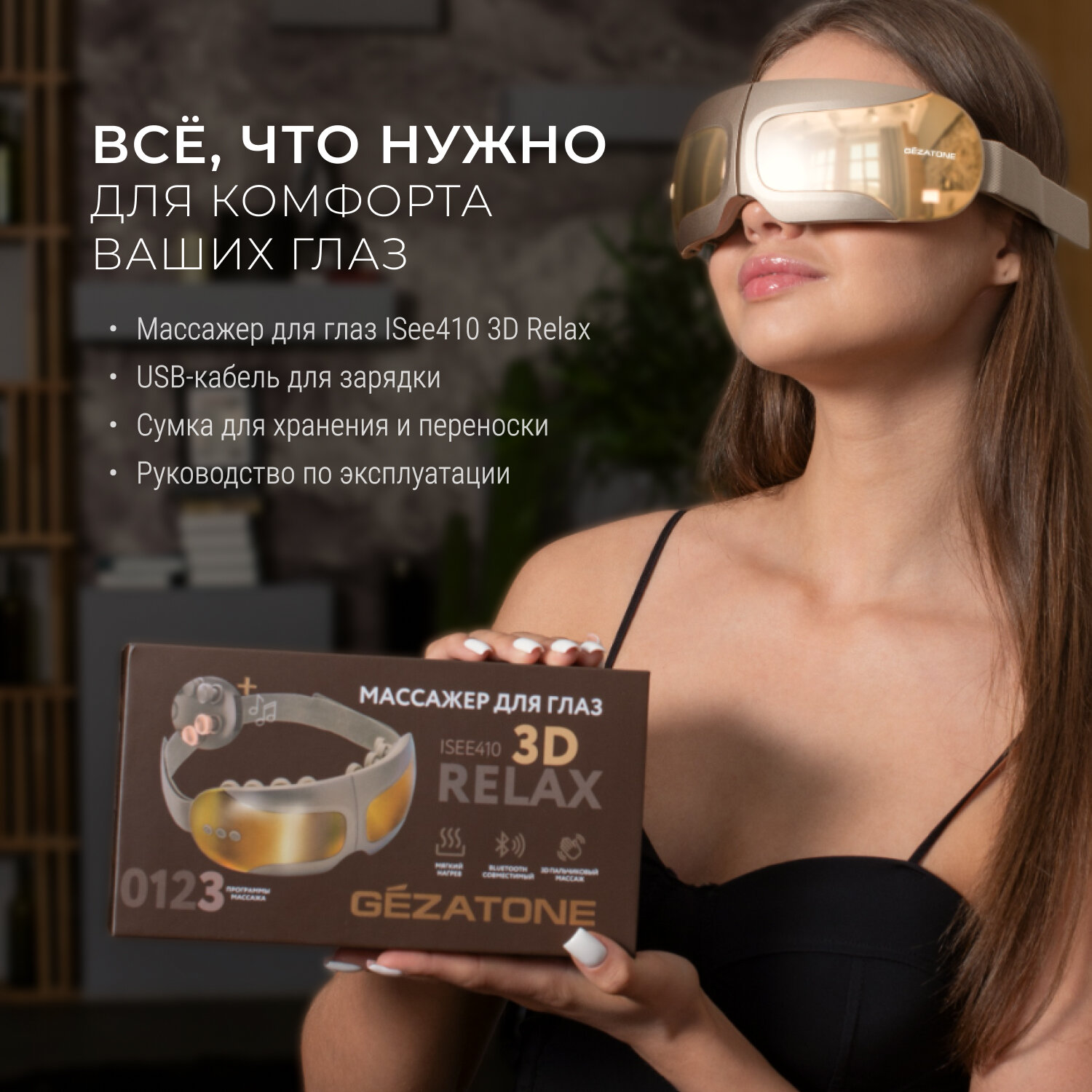 Очки массажер для глаз с нагревом и музыкой ISee410 3D Relax Gezatone интересное: