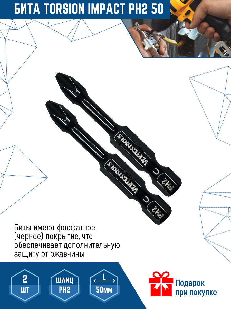 Бита для шуруповерта VertexTools IMPACT Torsion PH2X50 мм 2 шт.