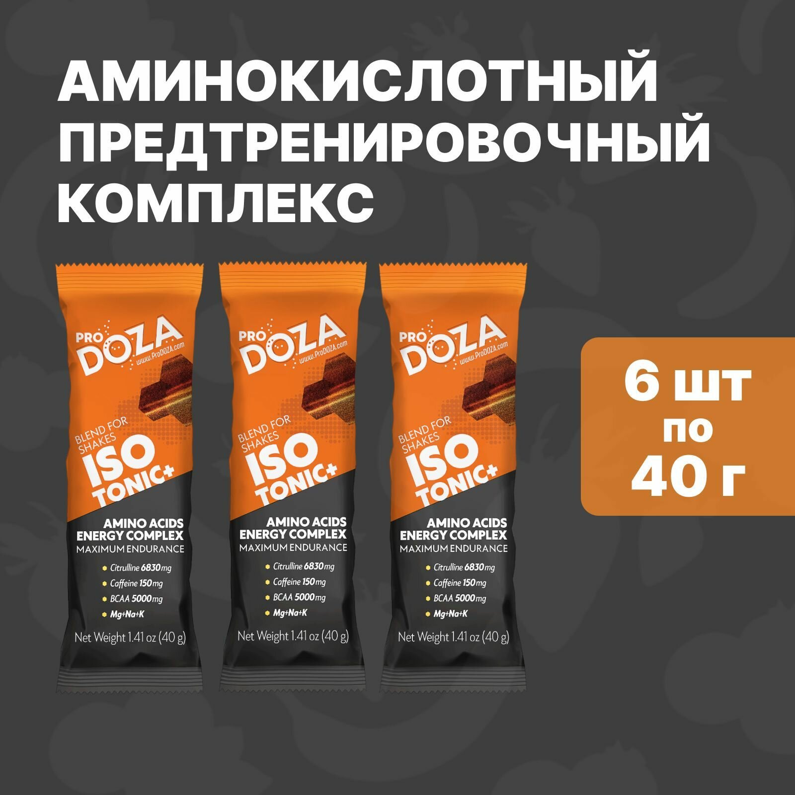 Купить Аминокислотный изотонический и предтренировочный комплекс ProDOZA, BCAA, цитруллин малат, 6 шт. по 40 г