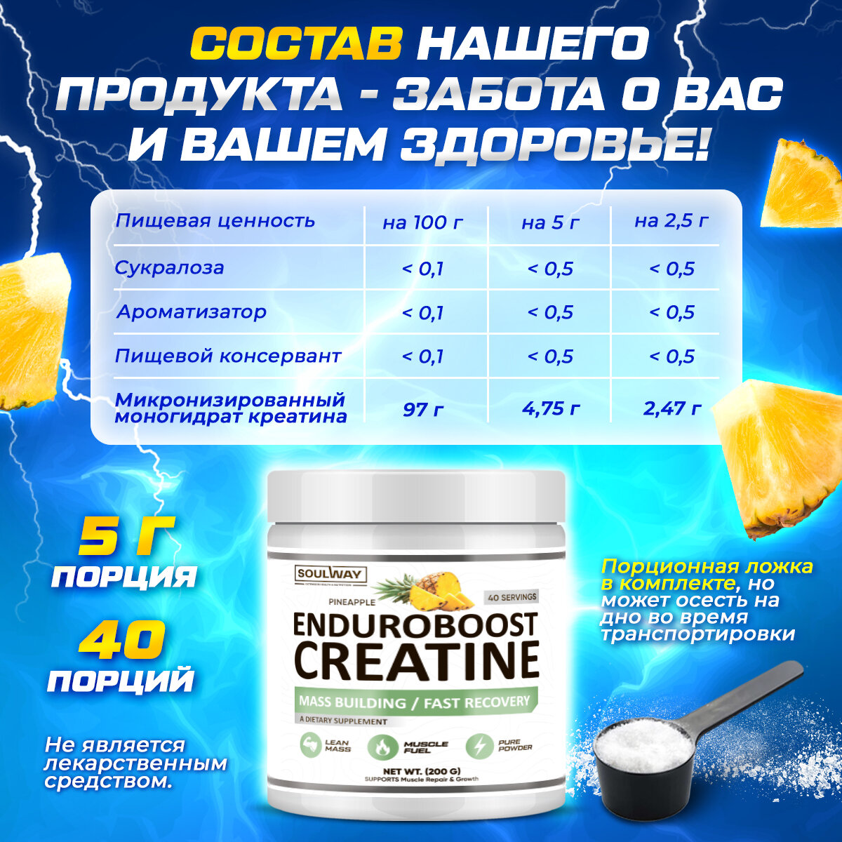 Креатин моногидрат порошок 200 г / Soul Way / 40 порций