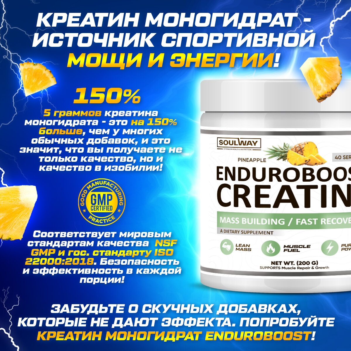 СохранитьКреатин моногидрат со вкусом ананас порошок 200 гр 40 порций, спортивное питание для набора мышечной массы интересное: