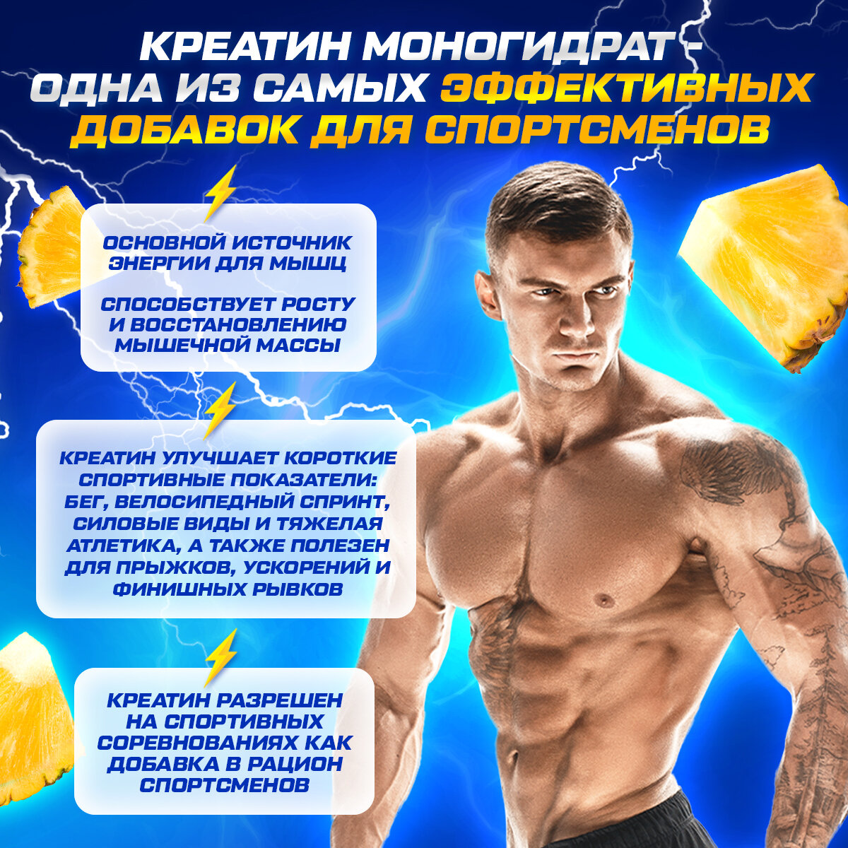 Креатин моногидрат со вкусом ананаса порошок 200 гр 40 порций, спортивное питание для набора мышечной массы