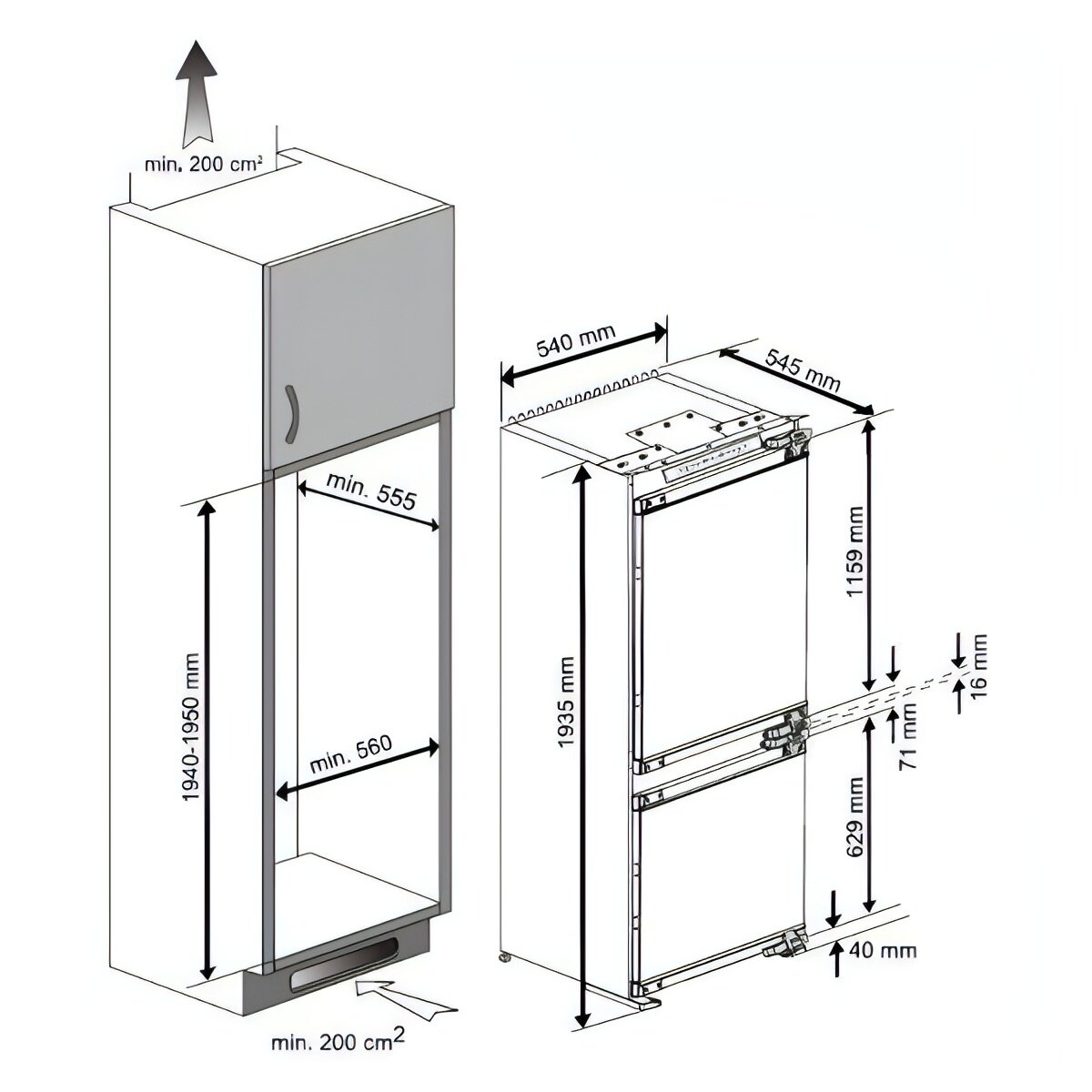 | Плюсы: | Более менее вместительный холодильник из встроенных. Ничего лишнего по дизайну. +что есть система ноуфрост в морозилке, очень жаль что нет ее в холодильной камере. Сразу же при использовании начал собираться лед на стенках холодильника(((