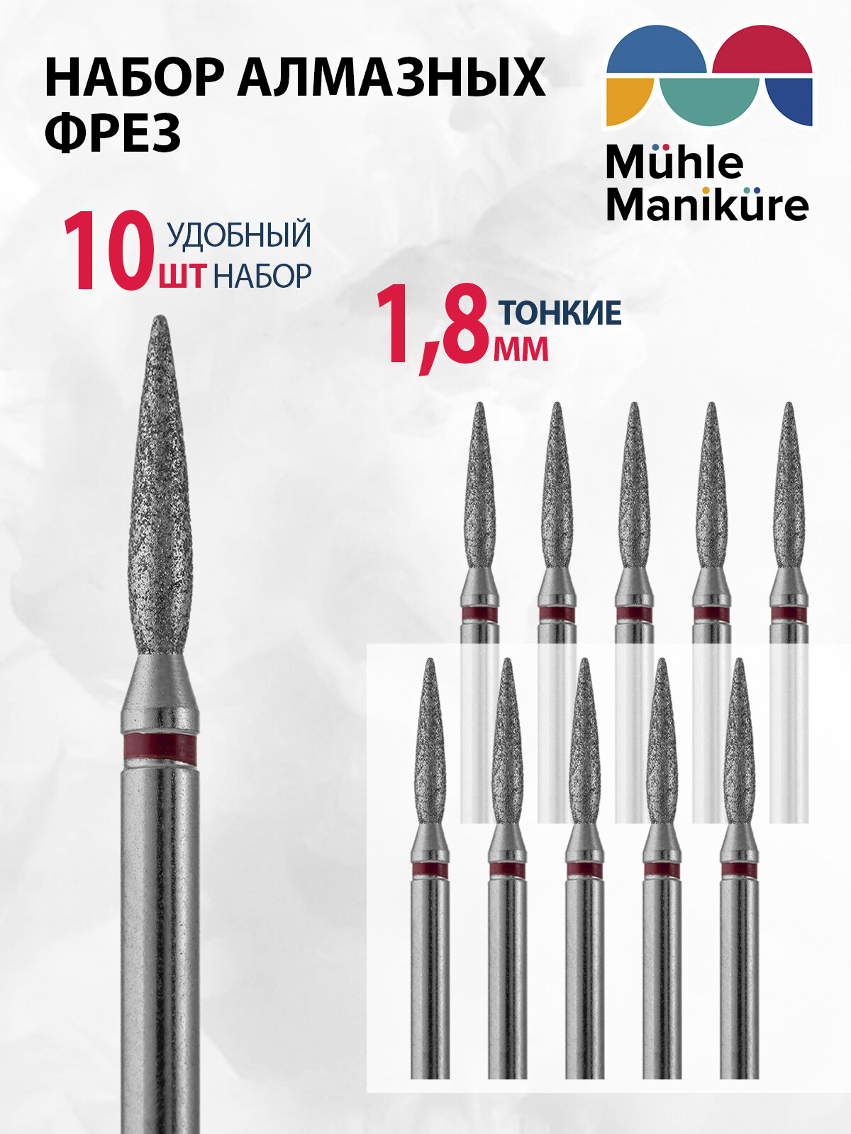 Купить Фреза для маникюра и педикюра алмазная Muhle Manikure для кутикулы 806 244N 514 018 Тонкая пламя (упаковка 10 шт)