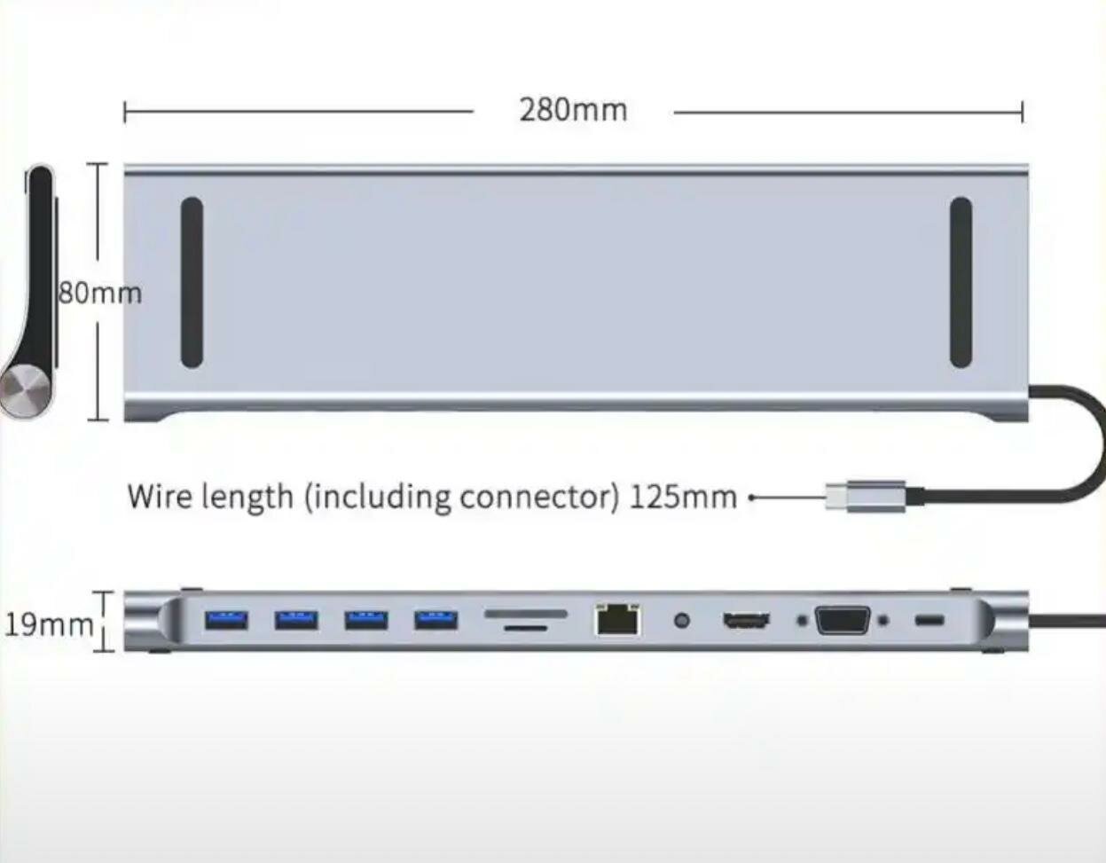 Vention Хаб type c 11 в 1 USB разветвитель, док-станция usb hub 4К , переходник , подставка под ноутбук, для MacBook, Lenovo, Aser арт. THTHC