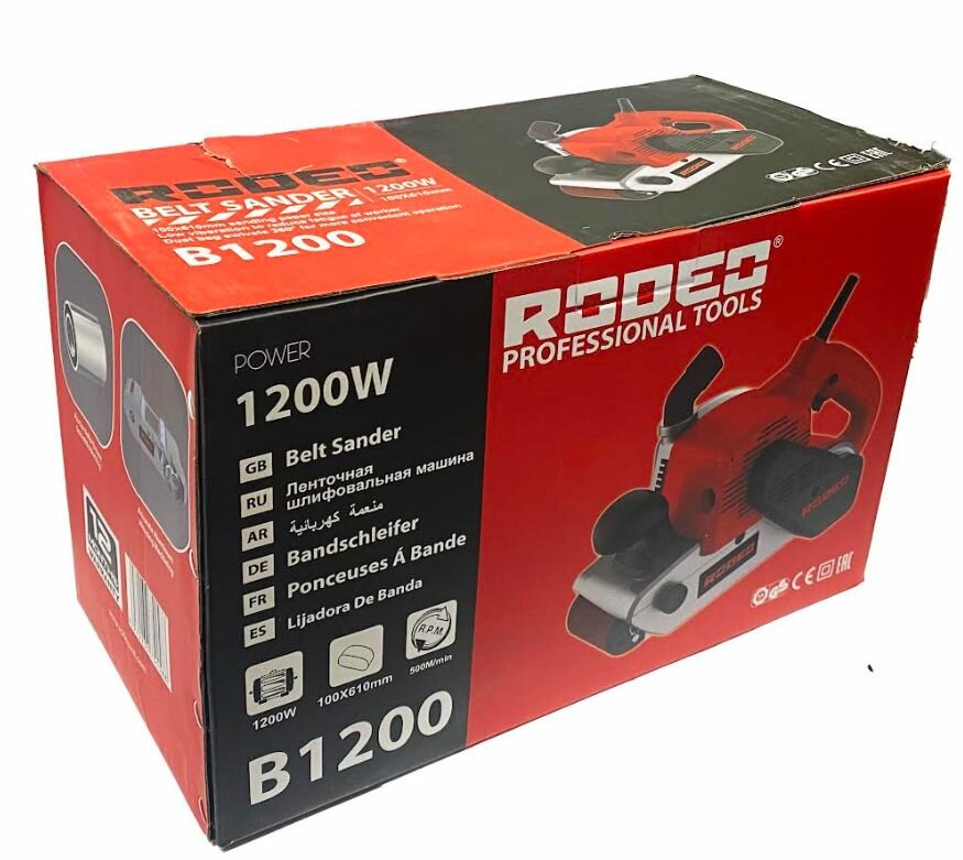 Шлифовальная машина ленточная RODEO B1200, 1200 Вт, 500 м/мин