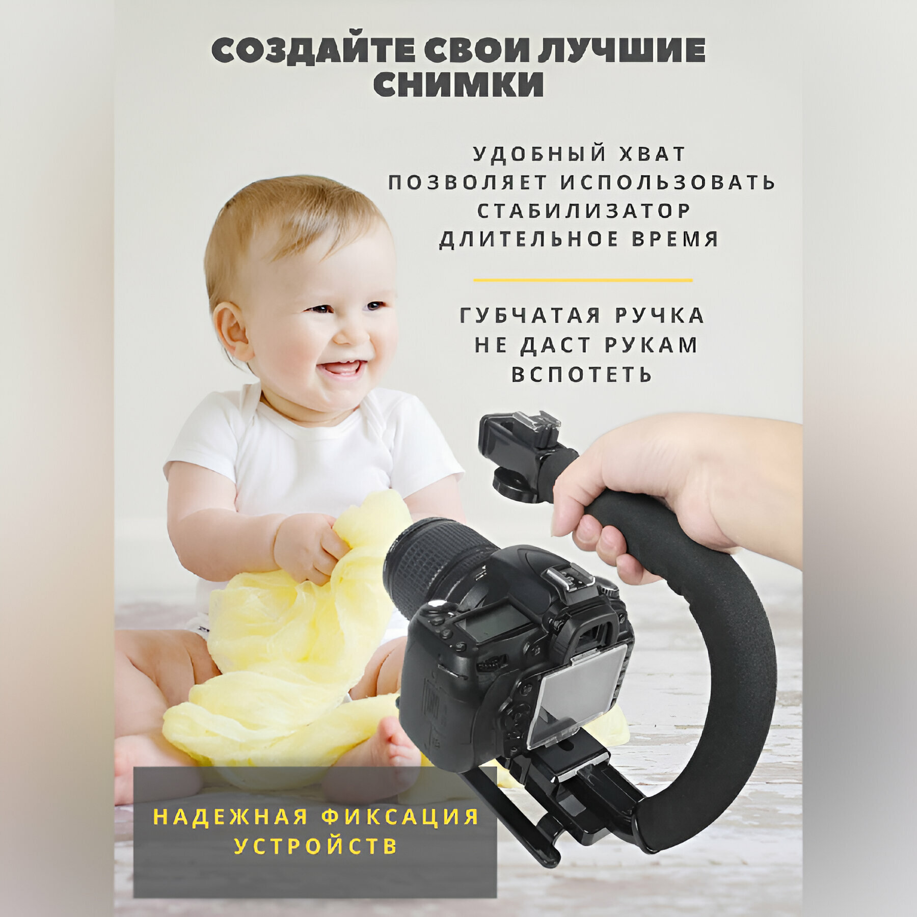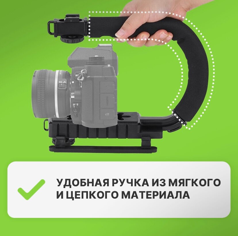 Стабилизатор ручной для камеры и смартфона, U- образный, черный интересное: