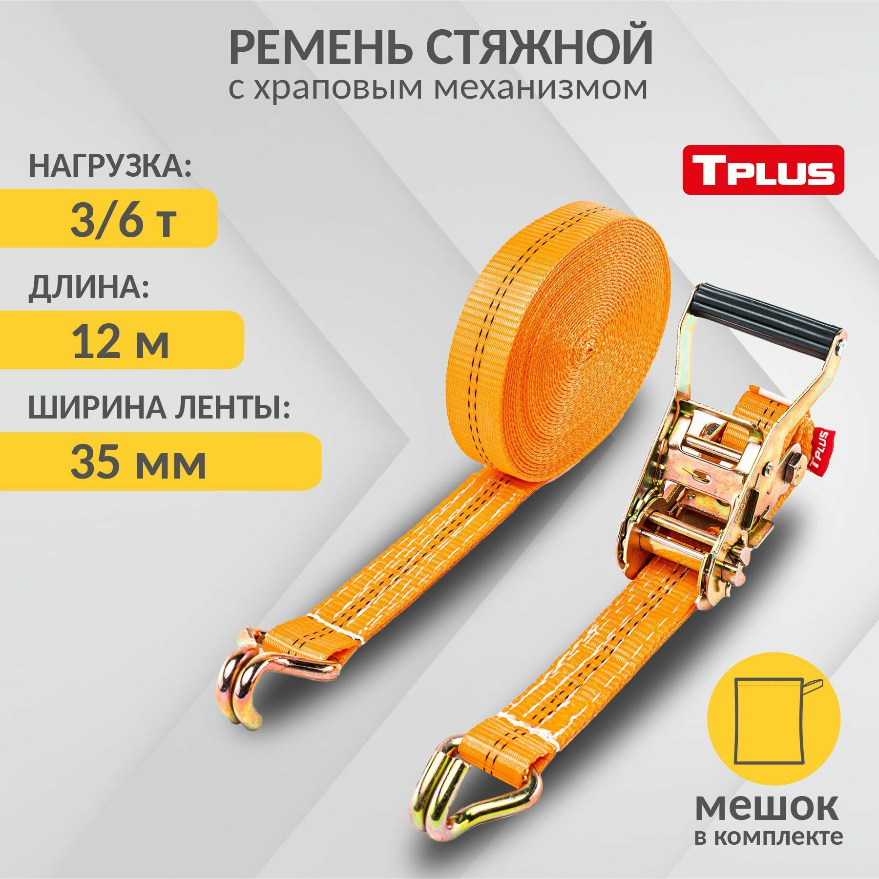 Купить Ремень стяжной, ремень для крепления груза, Cтяжка груза с храповым механизмом 3/6 т 12 м, Tplus