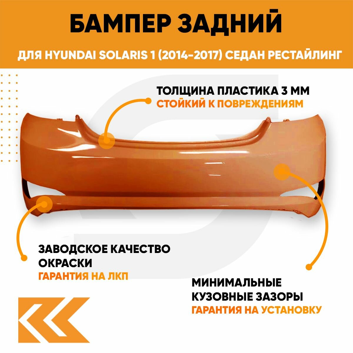 Купить Бампер задний в цвет кузова для Хендай Солярис 1 Hyundai Solaris 1 (2014-2017) седан R9A - VITAMIN C - Оранжевый