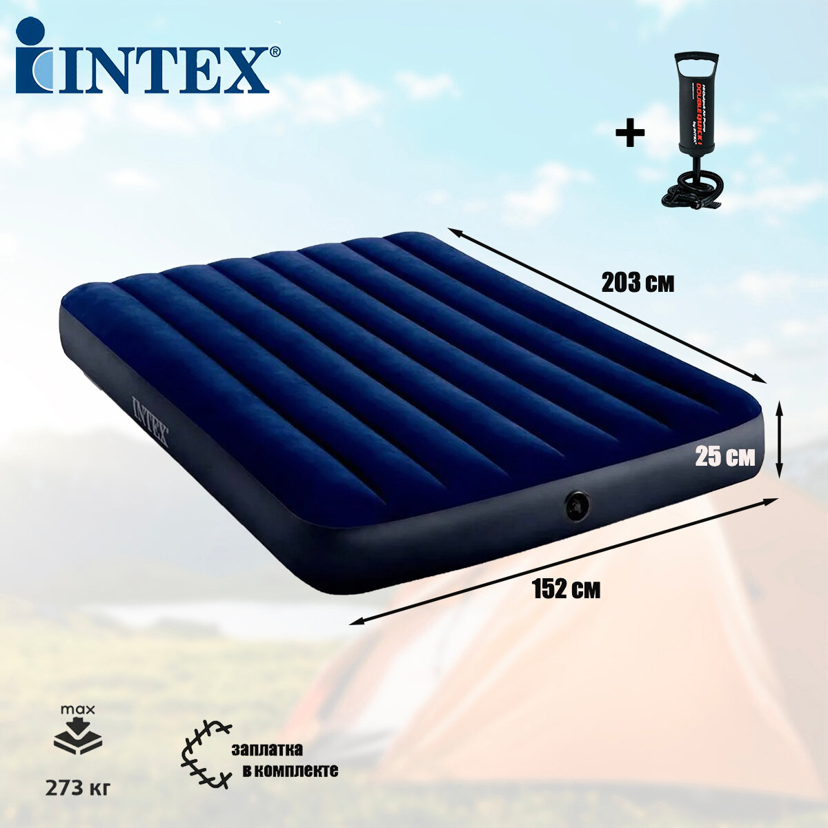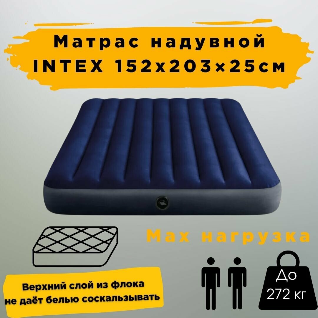 Надувной матрас Intex Classic Downy Airbed Fiber-Tech, 152х203х25 64759