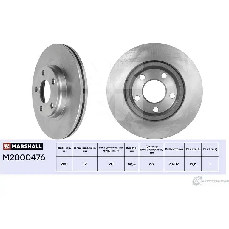 Купить Тормозной диск передн. Audi A4 (B5-B7) 94- / A8 (D2, D3) 96-, VW Passat (B5) 96- (M2000476) MARSHALL / арт. M2000476 - (1 шт)