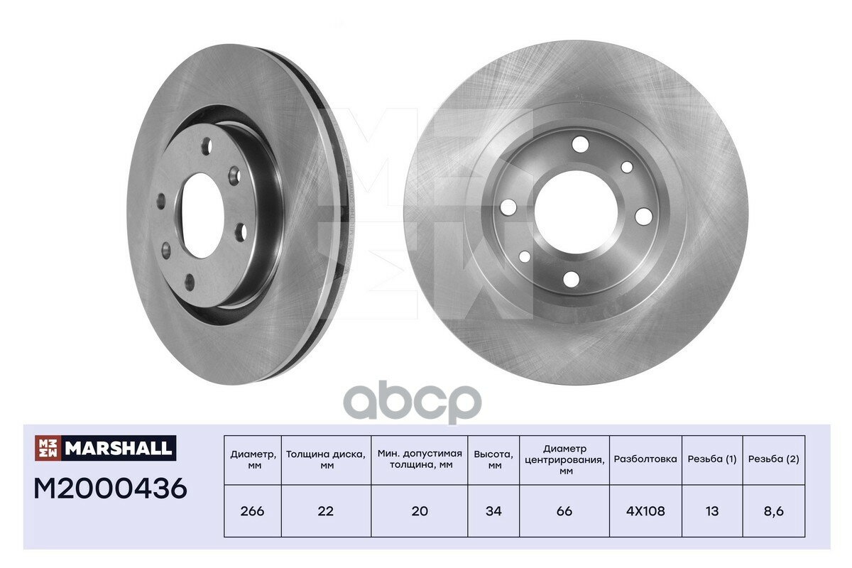 Тормозной Диск Передн. MARSHALL арт. M2000436