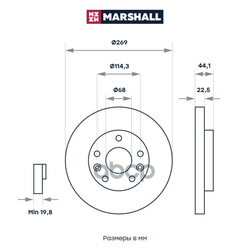 Диск Тормозной Renault Duster 12-, Kaptur 16- (-Esp) Передний 269 Х 22,5 Marshall MARSHALL арт. M2000481