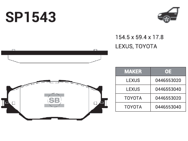 Ниже Вы можете прочитать отзывы на SANGSIN BRAKE SP1543 SP1543 HI-Q колодка дисковая D2277/PN1829 0446553020/0446553040, ознакомится с подробными характеристиками, посмотреть интересные обзоры и фотографии на SANGSIN BRAKE SP1543 SP1543 HI-Q колодка дисковая D2277/PN1829 0446553020/0446553040.