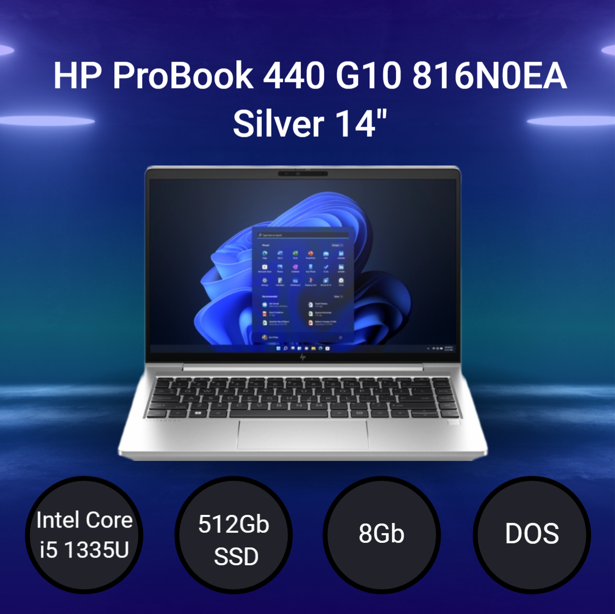 Ноутбук HP ProBook 440 G10 (816N0EA) Intel Core i5 1335U 1300MHz/14"/1920х1080/8GB/512GB SSD/Intel Iris Xe Graphics/Wi-Fi/Bluetooth/DOS (Silver)