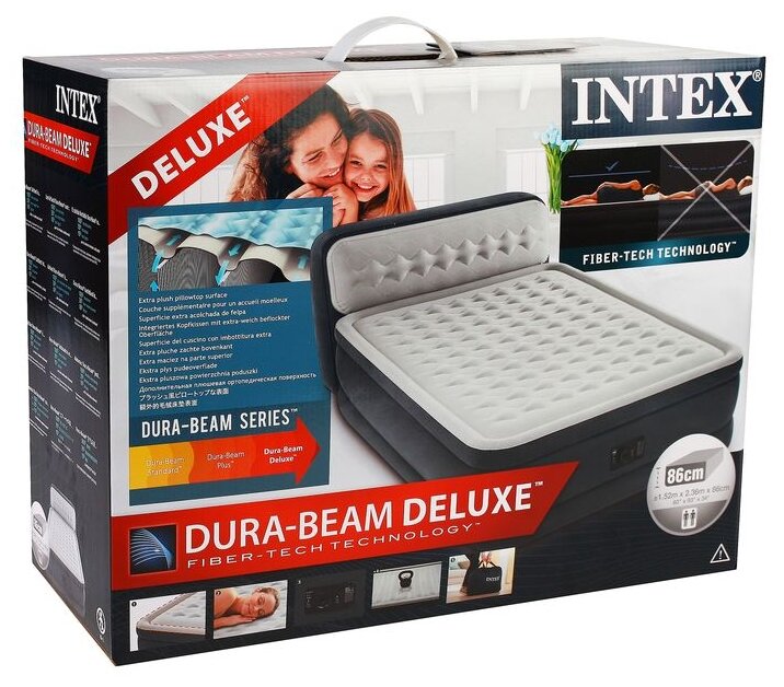 Купить INTEX Надувная кровать с насосом Ultra Plush Heardboard 152*236*86 см 64448