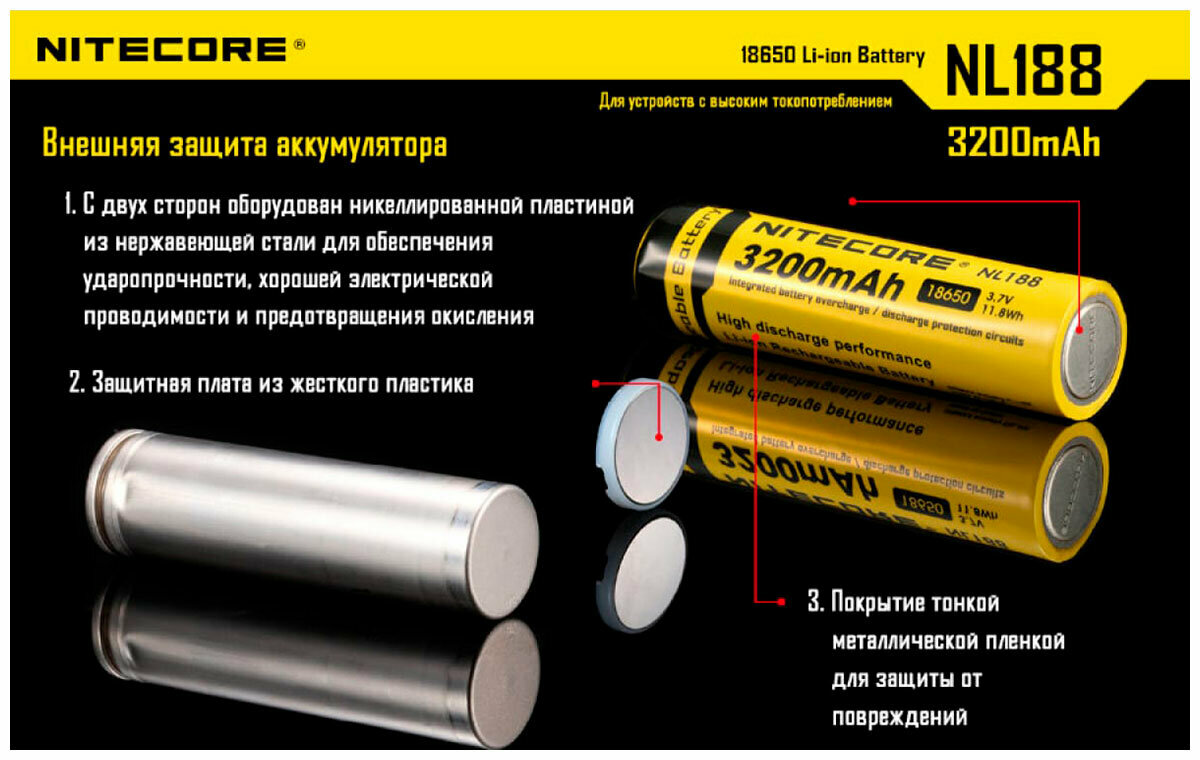 Аккумулятор Nitecore NL1832 18650 3.7v 3200mA интересное: