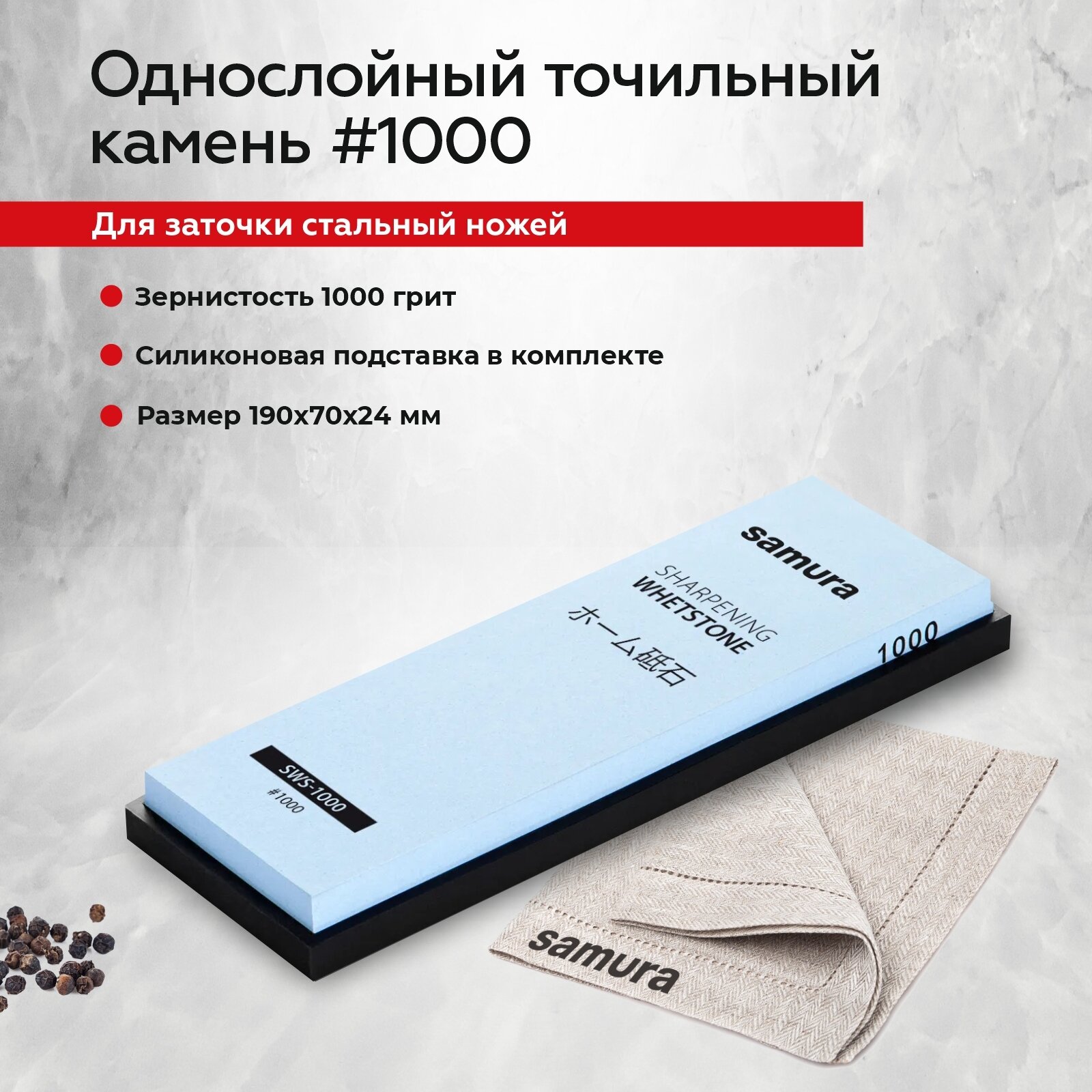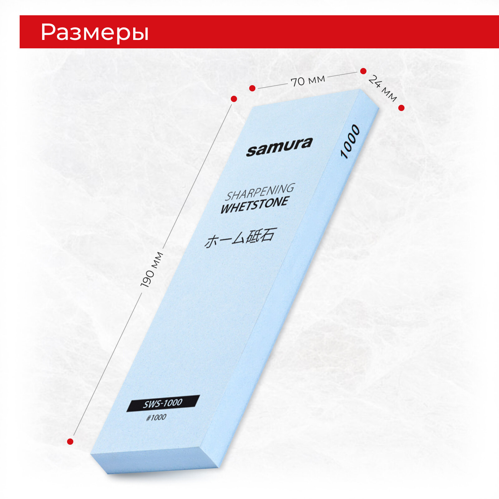 Камень точильный водный для заточки ножей однослойный #1000 Samura / точилка для ножей ручная SWS-1000