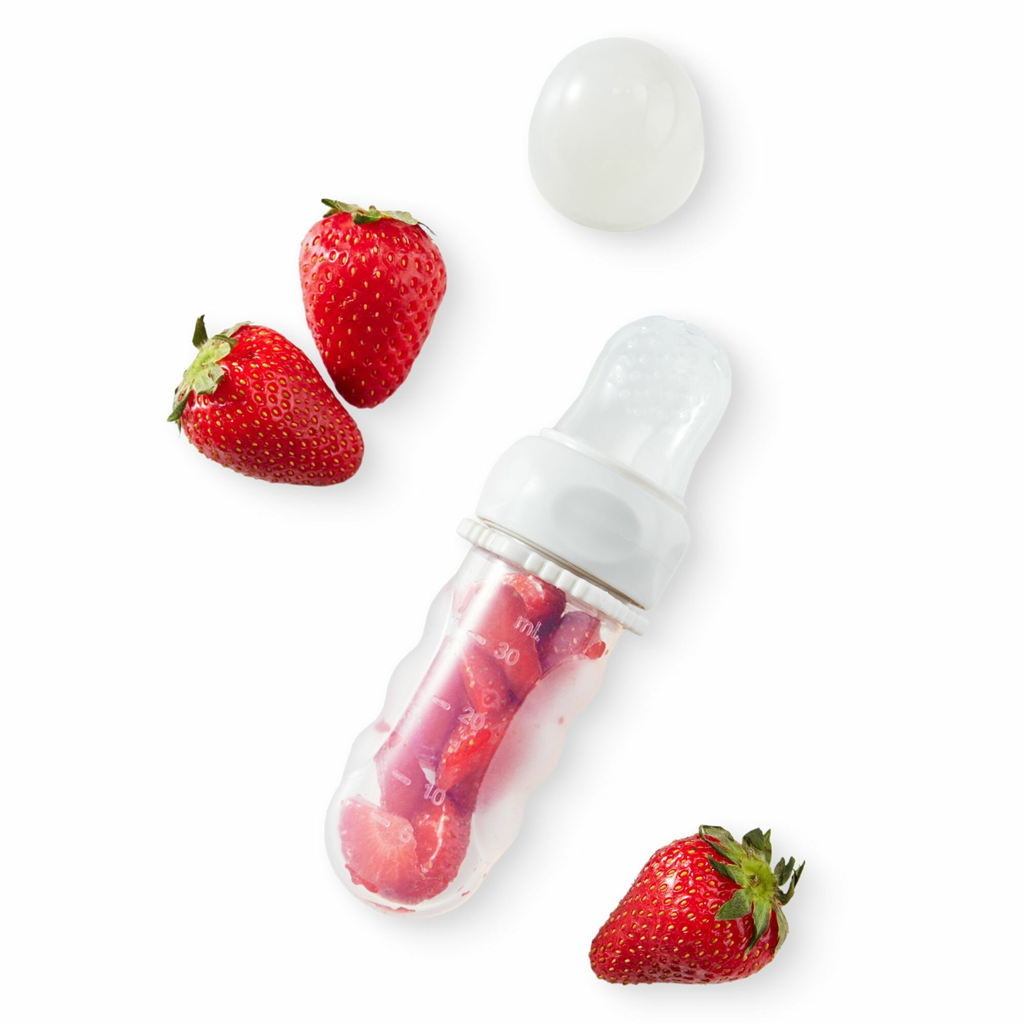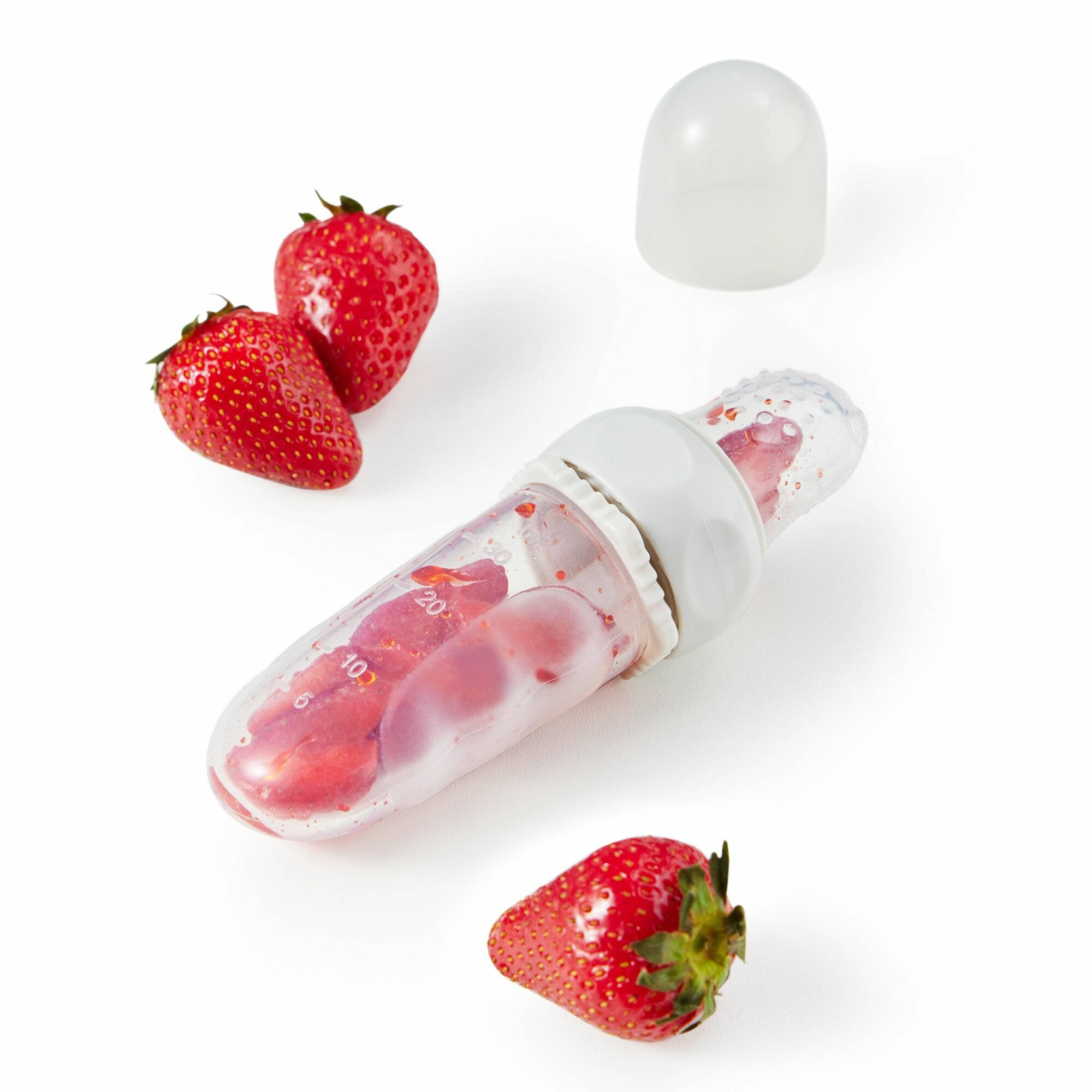 Купить 15057, Ниблер-дозатор Happy Baby, ниблер для прикорма, силиконовый, с мерным делением, в футляре, светло-серый