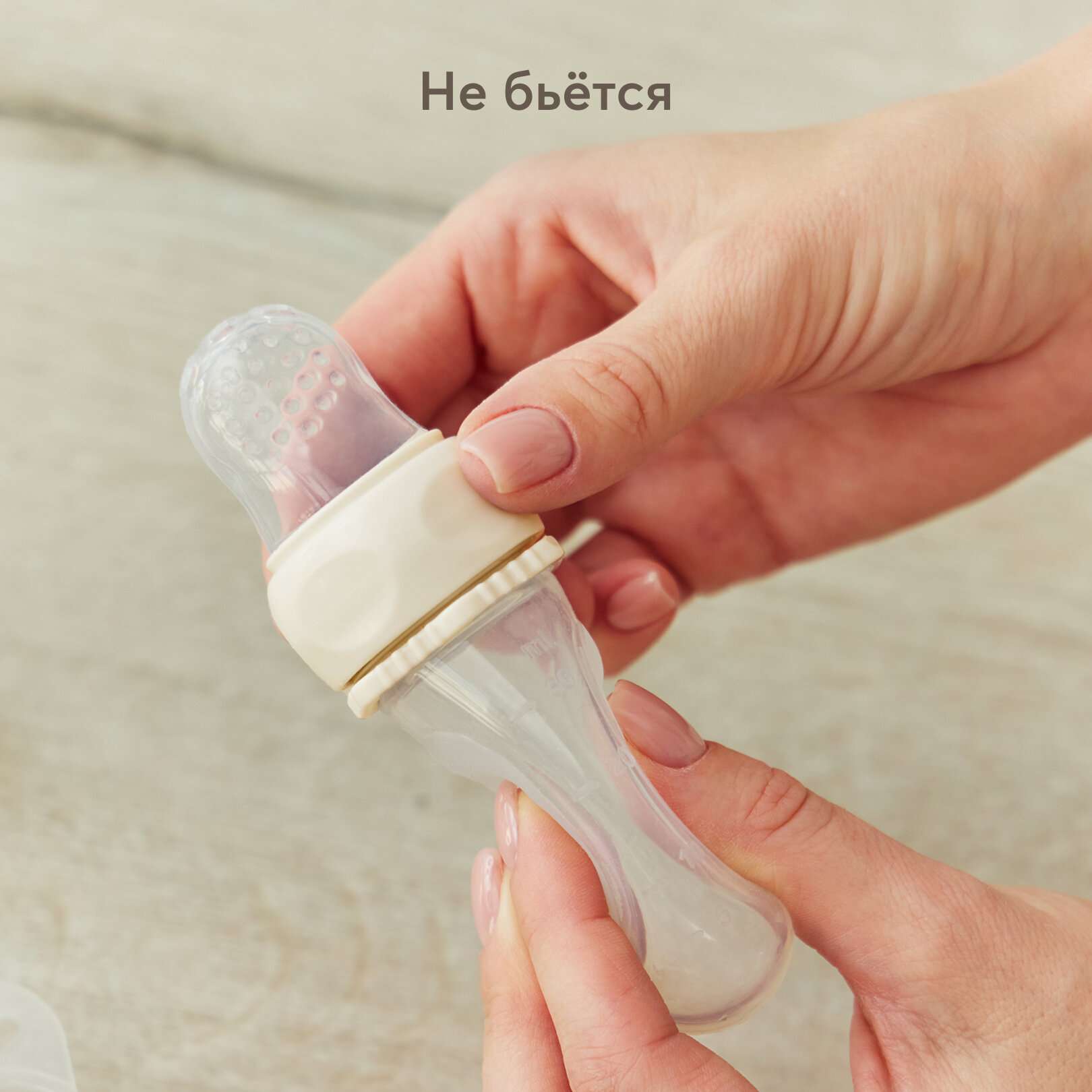 15057, Ниблер-дозатор Happy Baby, ниблер для прикорма, силиконовый, с мерным делением, в футляре, кремовый интересное: