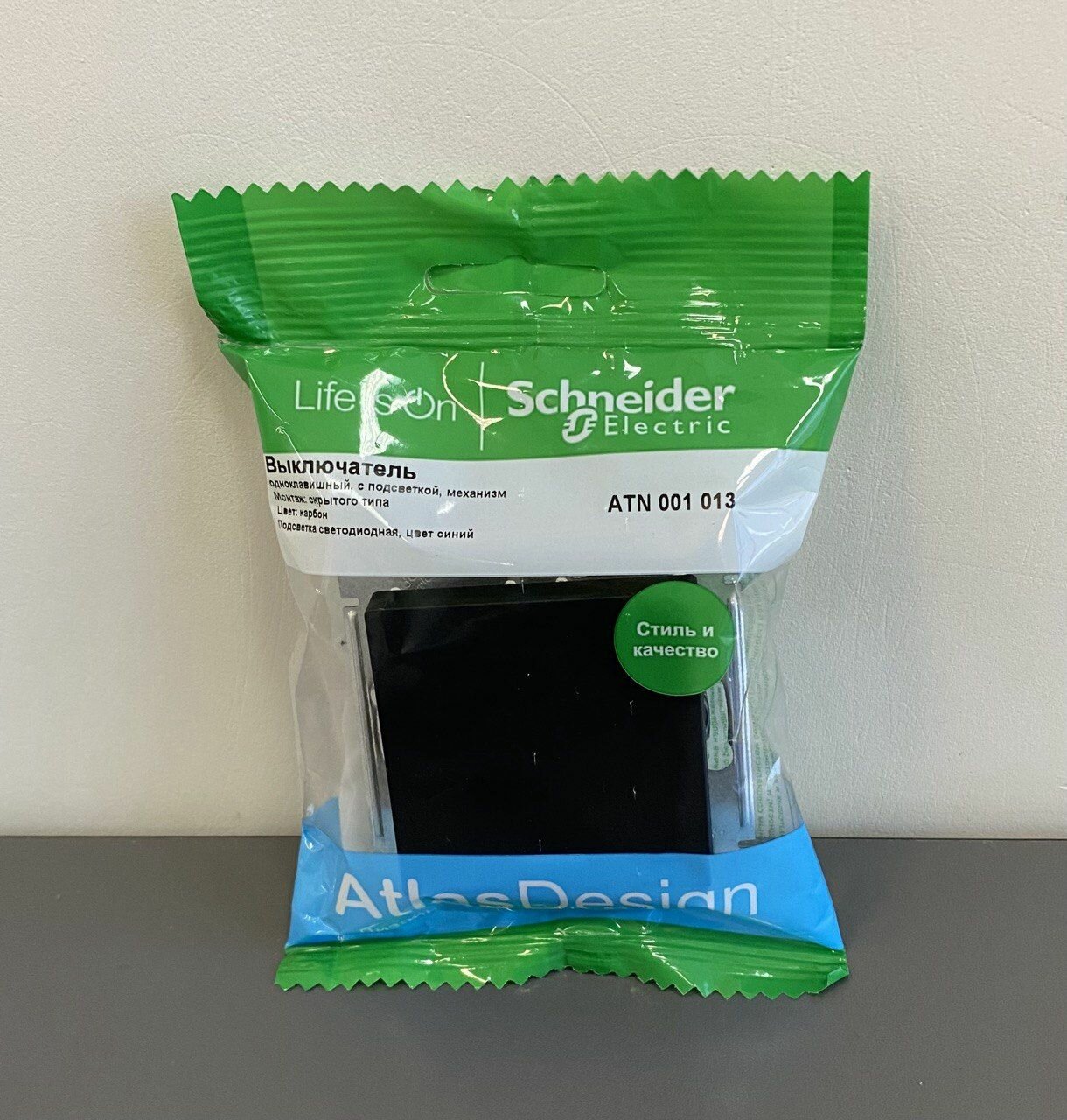 Выключатель 1-клавишный ATLASDESIGN, с подсветкой, скрытый монтаж, карбон | код. ATN001013 | Schneider Electric (4шт. в упак.)