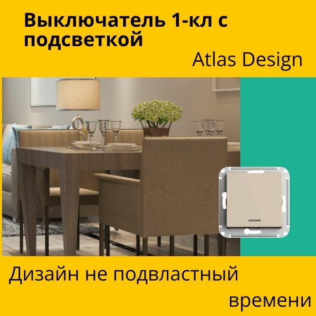 10 шт. Systeme Electric AtlasDesign Песочный Выключатель 1-клавишный с подсветкой, сх.1а, 10АХ, механизм, ATN001213