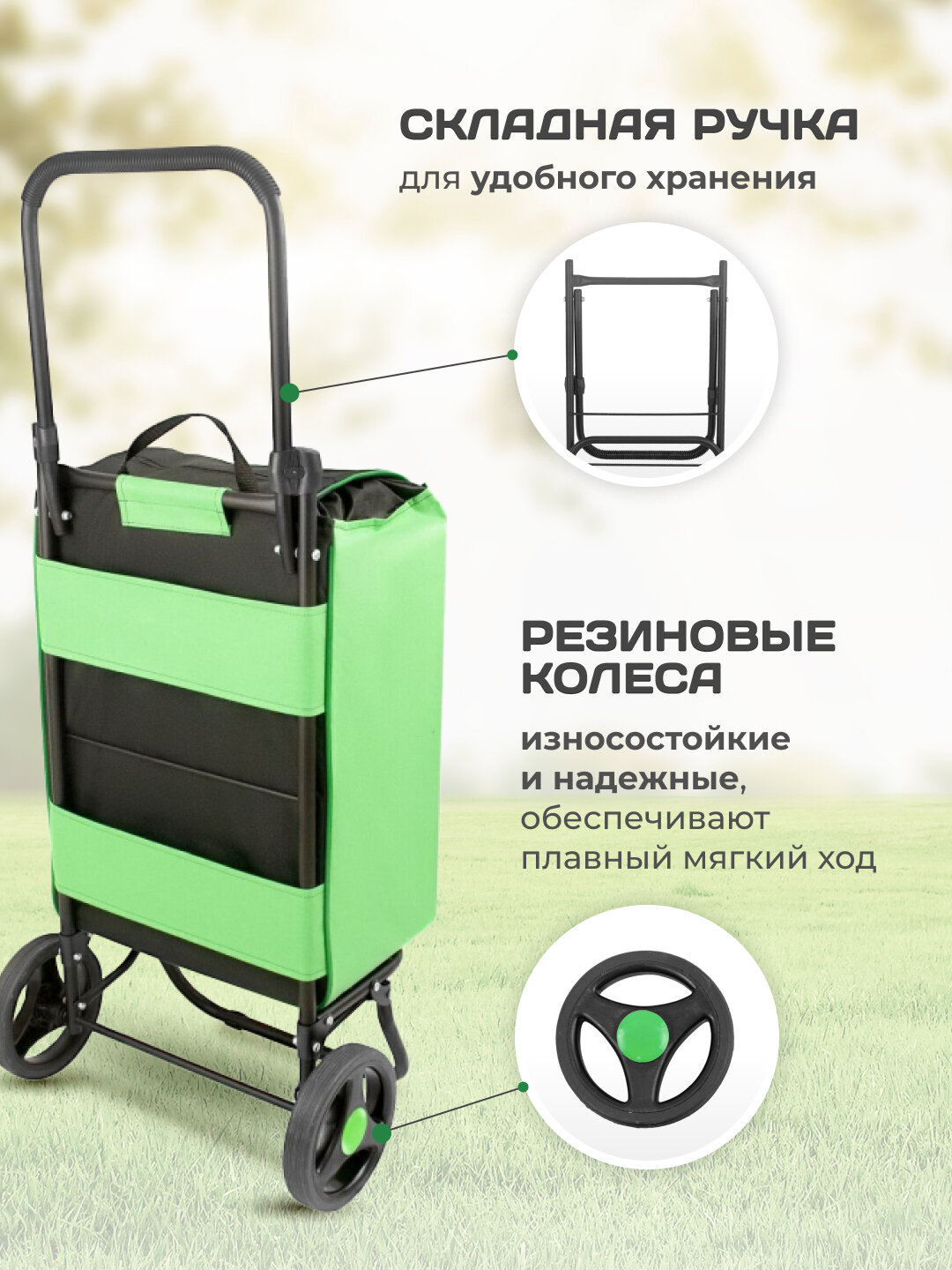 Купить Сумка-тележка исток СТМ12 Спутник 1 Макси до 45 кг, черный/зеленый