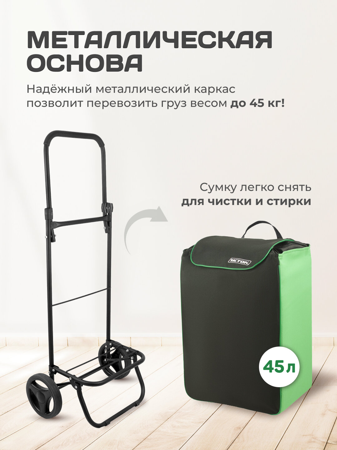 СохранитьСумка-тележка исток СТМ12 Спутник 1 Макси до 45 кг, черный/зеленый интересное: