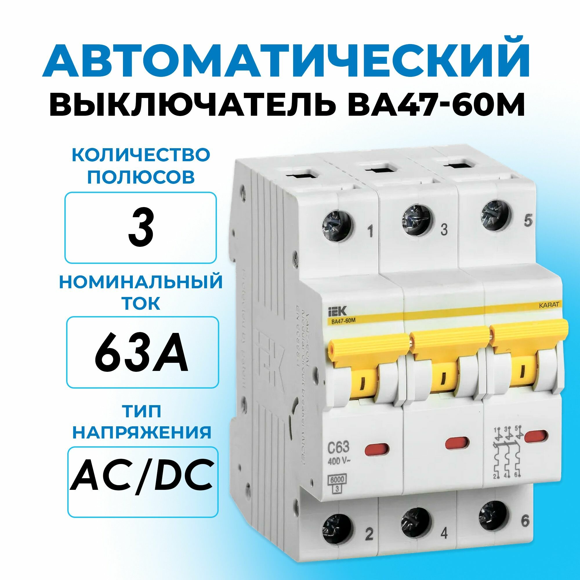 IEK KARAT Выключатель автоматический ВА47-60M 3Р 63А 6кА С